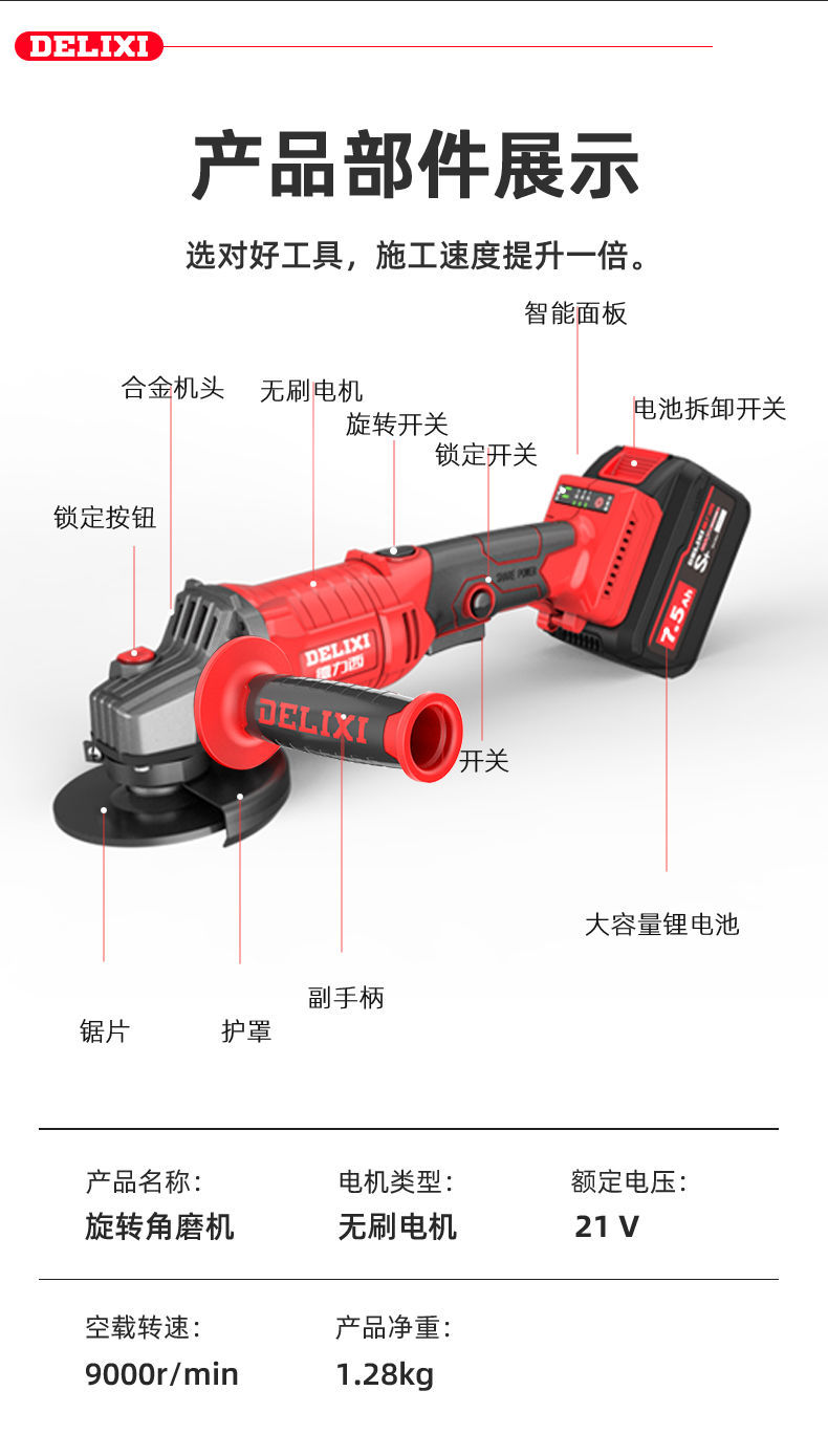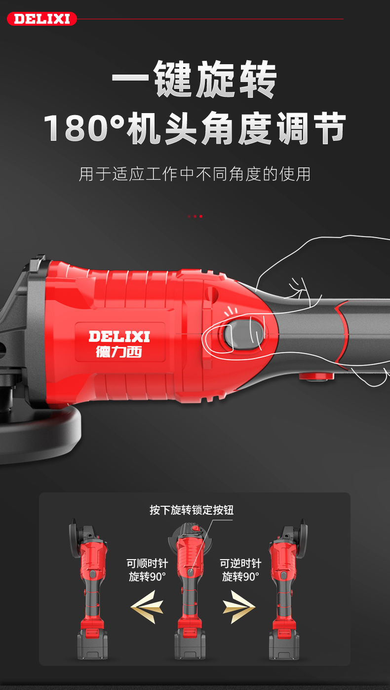 Delixi リチウム電気アングルグラインダーブラシレス充電式研磨機切断機研削盤ロータリーアングルグラインダー