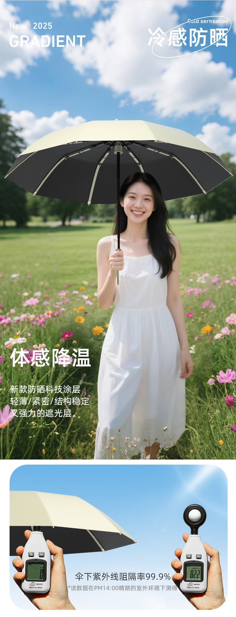 全自動10骨黒ゴム日焼け止め折り畳み傘晴雨両用日傘紫外線防止日傘卸売り傘