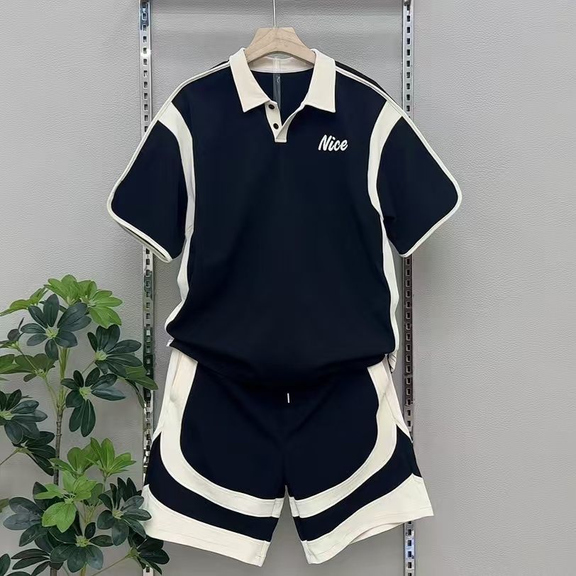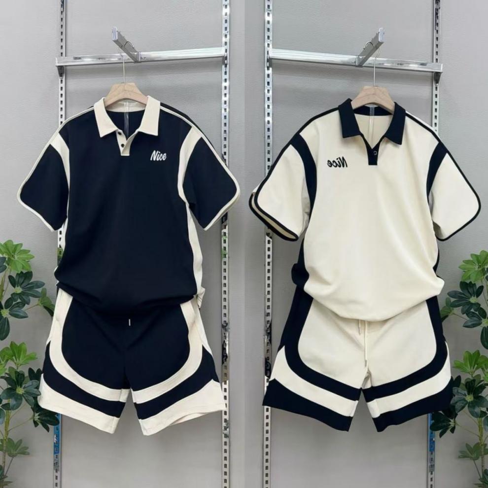 夏の新作メンズトレンドポロショーツ半袖ツーピースファッションカジュアルスポーツコントラストカラーステッチ刺繍スーツ