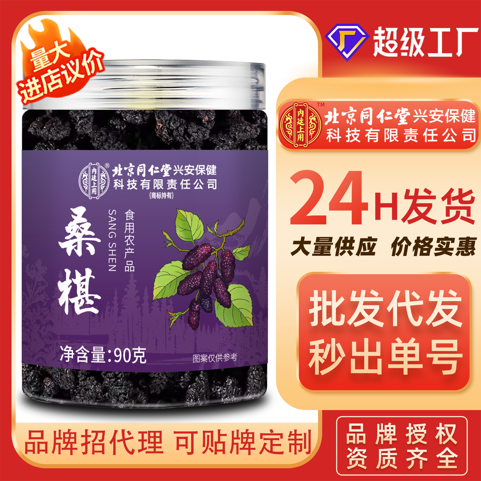 北京同仁堂の水洗い済み新鮮黒桑の実、そのまま食べられる、水に浸して飲む、お茶に淹れる、桑の実の卸売販売。