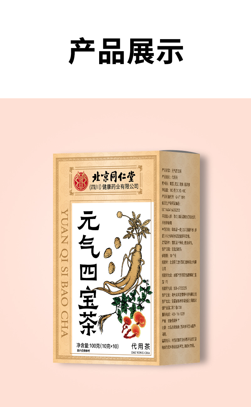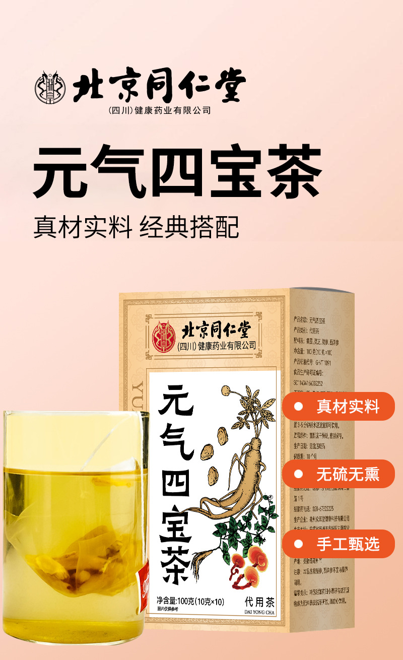 北京銅仁堂元斉四宝茶メーカー卸売箱入りレンゲコドノプシスオフィオポゴンジャポニカスアメリカ人参四宝茶