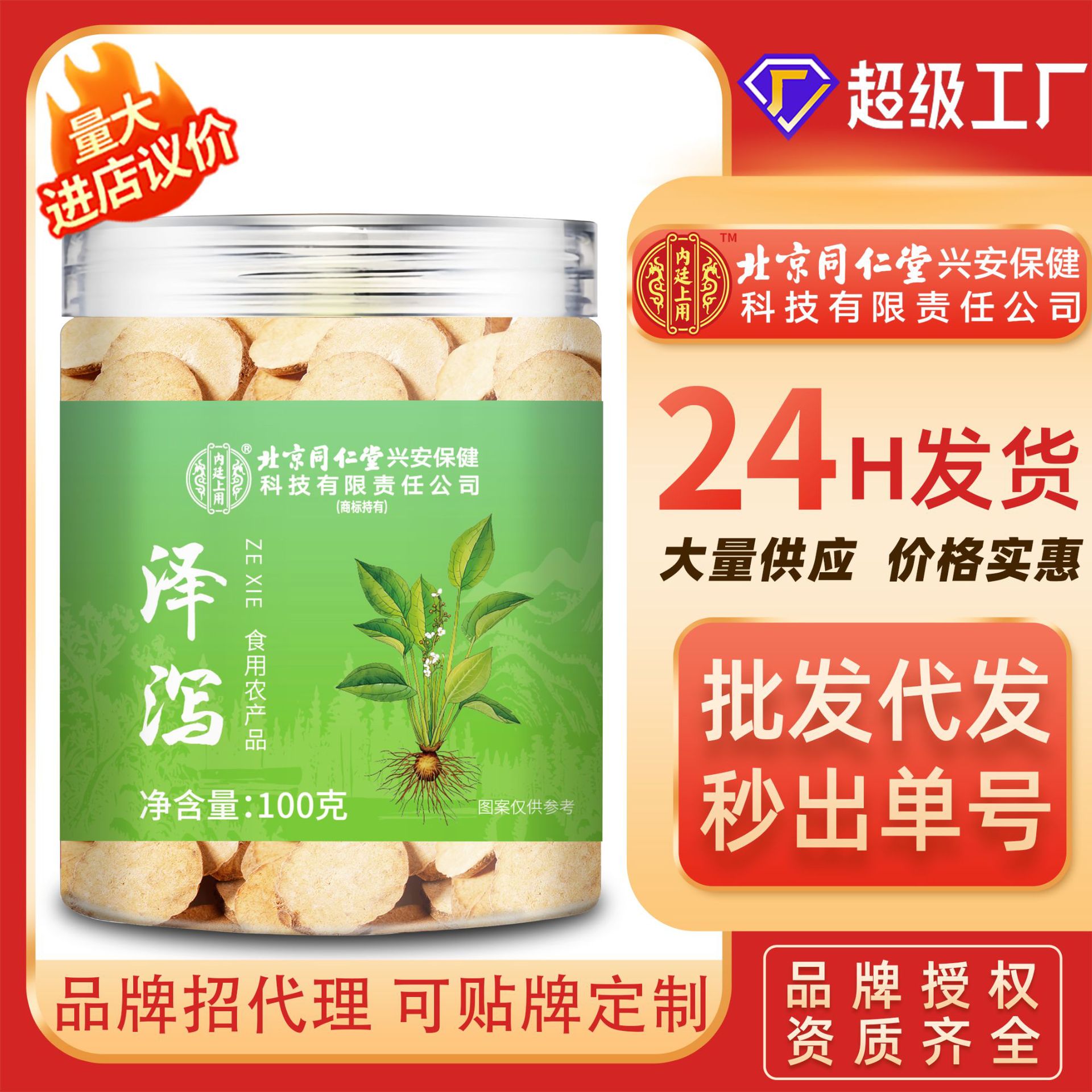 北京同仁堂澤下痢100グラムの薬食同源は長年野生の老根四川沢下痢無硫黄の新しい商品です。