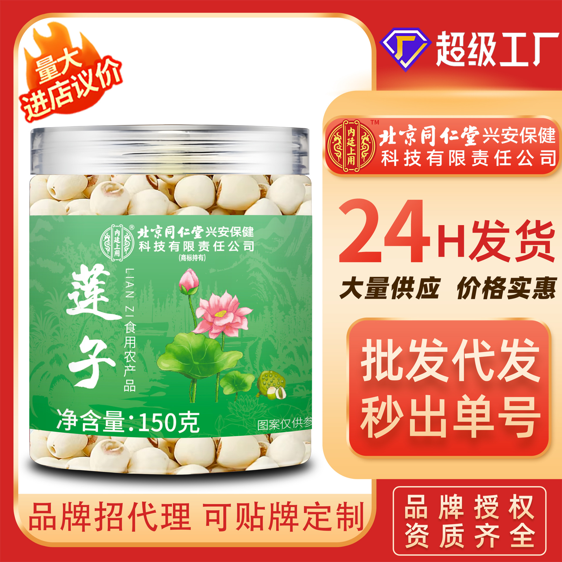 北京同仁堂蓮子150グラムの高級天然白蓮子無芯湘蓮薬食同源