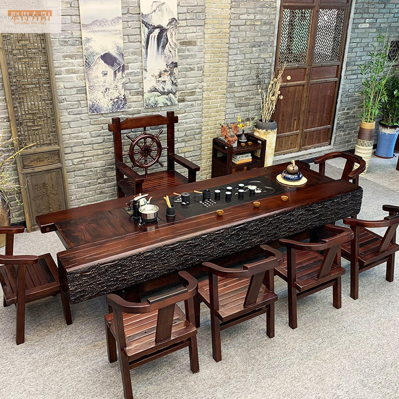 古い船木の中国式のお茶のテーブルの一体のセットのテーブルと椅子の組み合わせの全実木の新しい事務室の家庭用のお茶のテーブル
