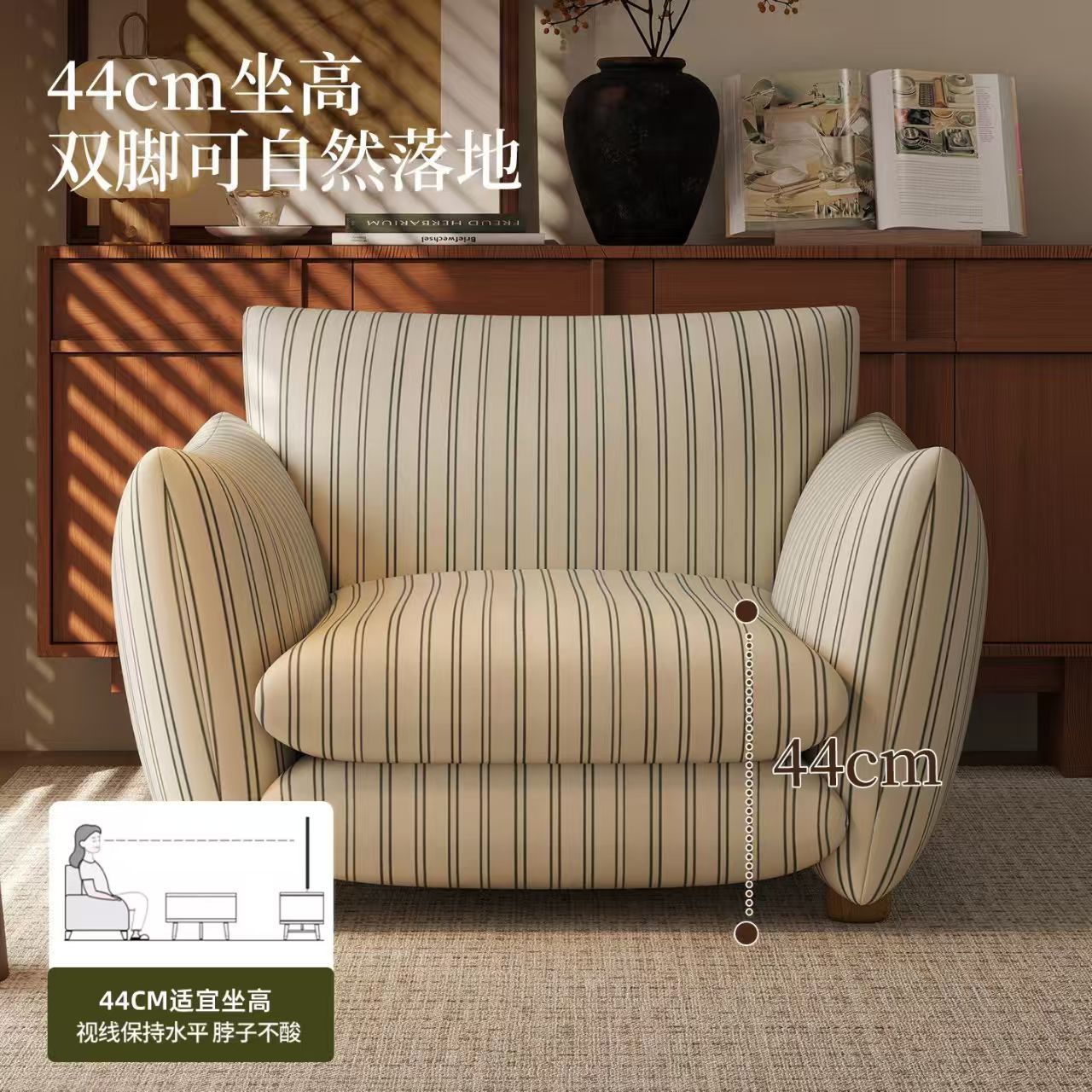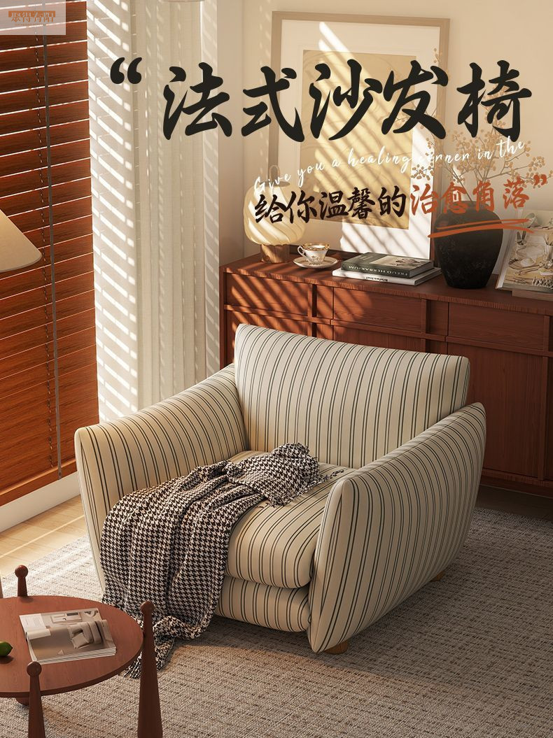 单人沙发卧室小沙发复古轻奢高级古风阳台懒人舒适沙发椅子细条纹