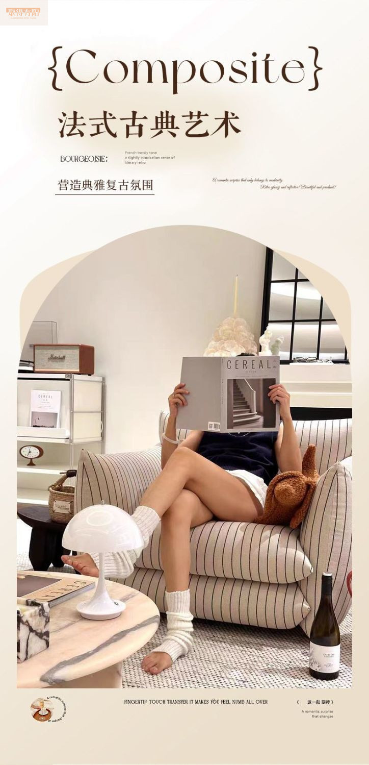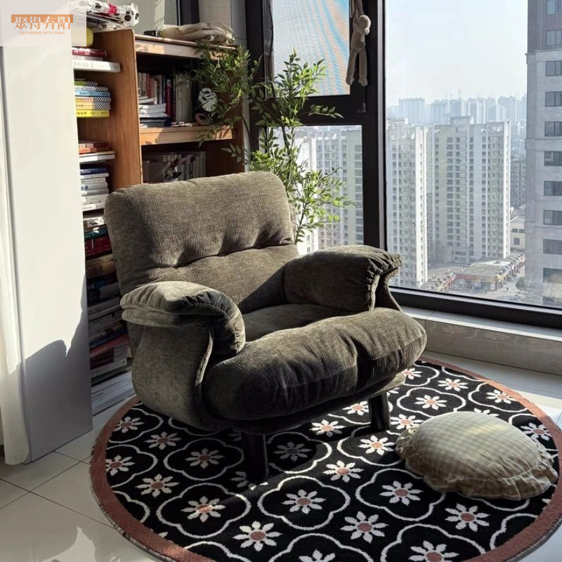 聪瑞尚法式复古单人沙发椅侘寂风客厅民宿酒店设计师棉麻懒人沙发