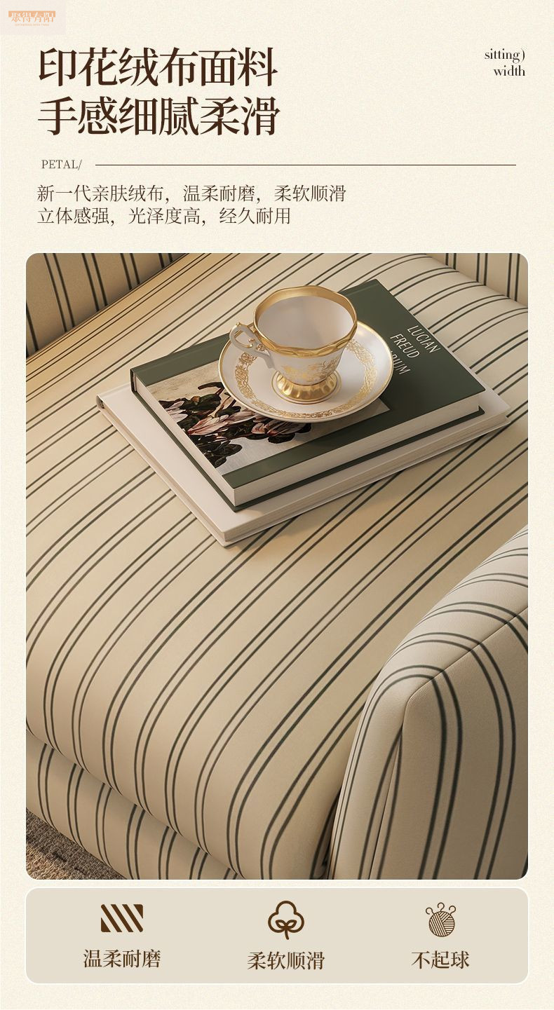 背の高いソファ、レトロなクリエイティブなファブリックソファ、小さなリビングルーム、レイジースタイルのストレートカジュアルチェア、アンティーククリームスタイル