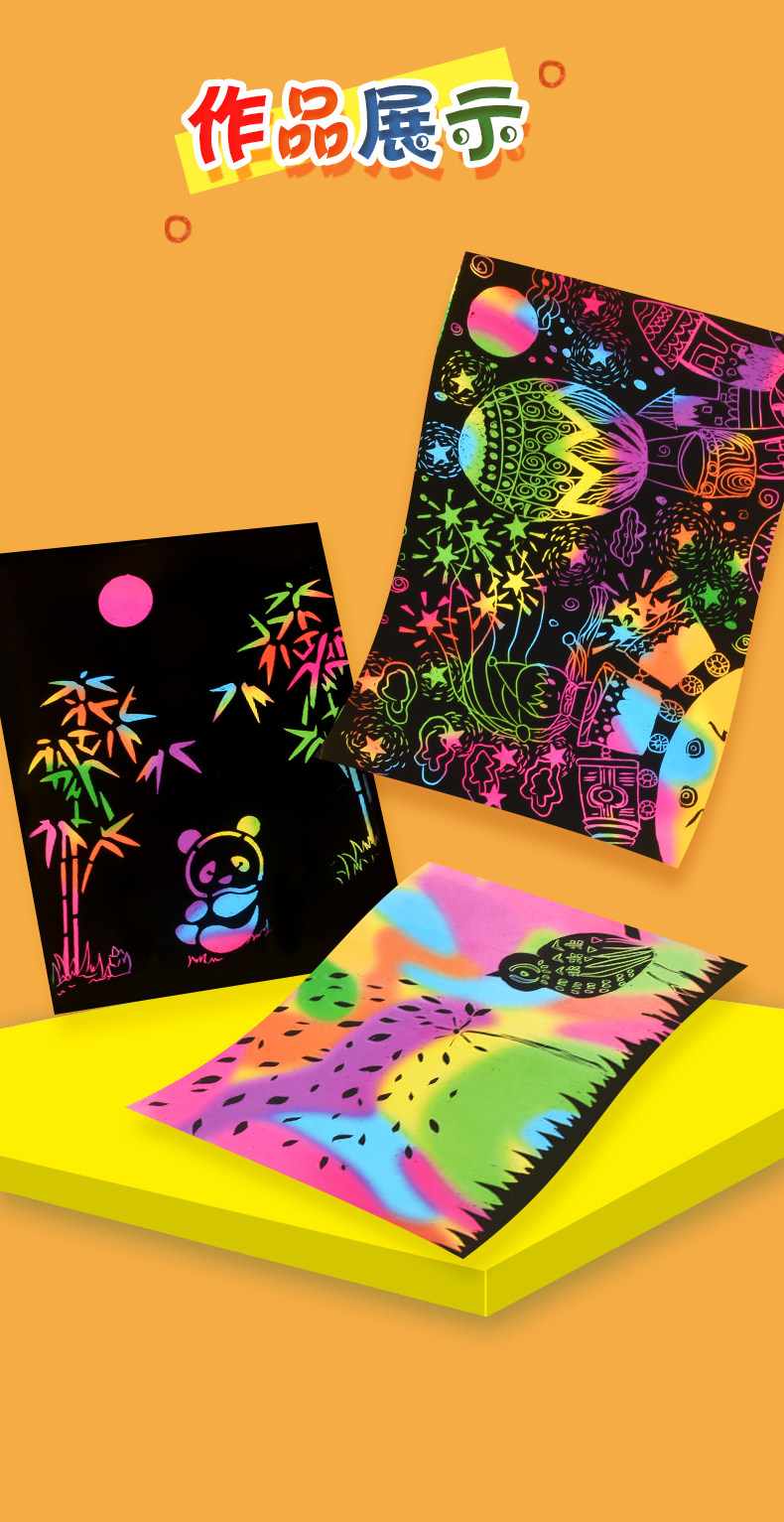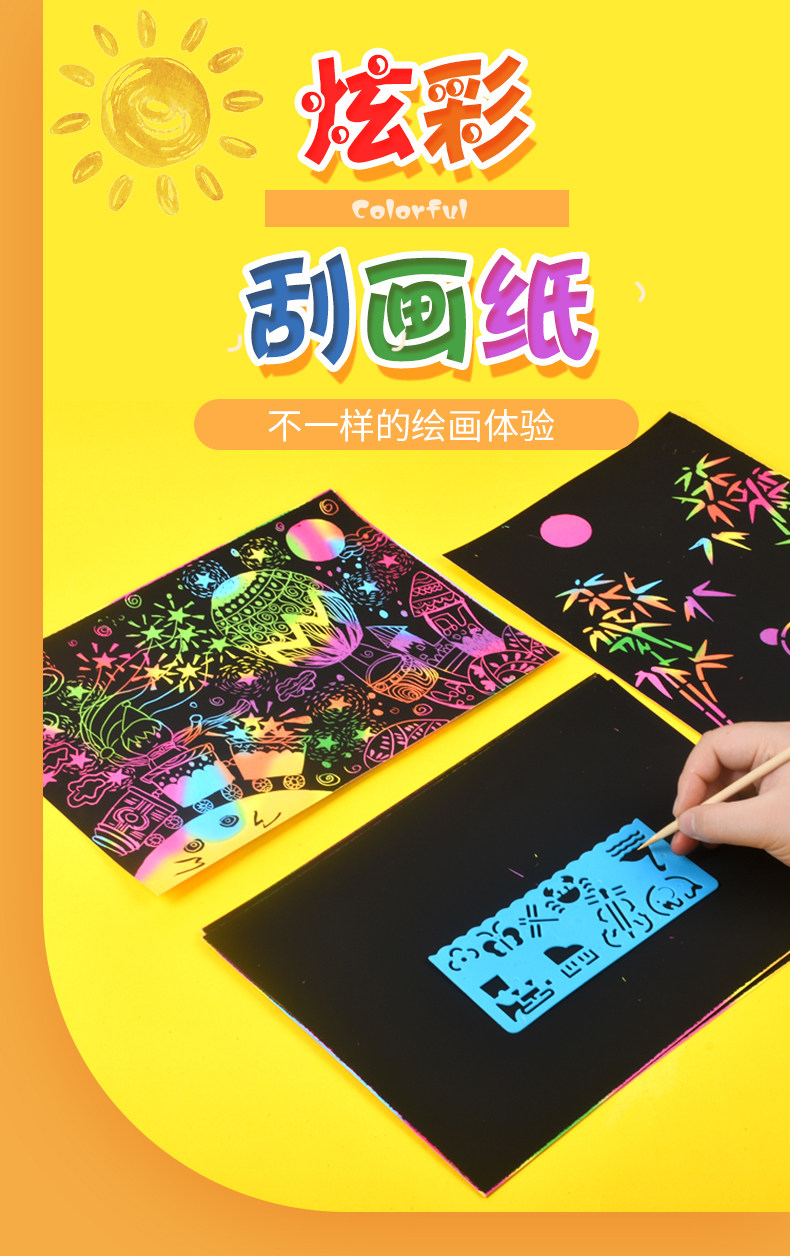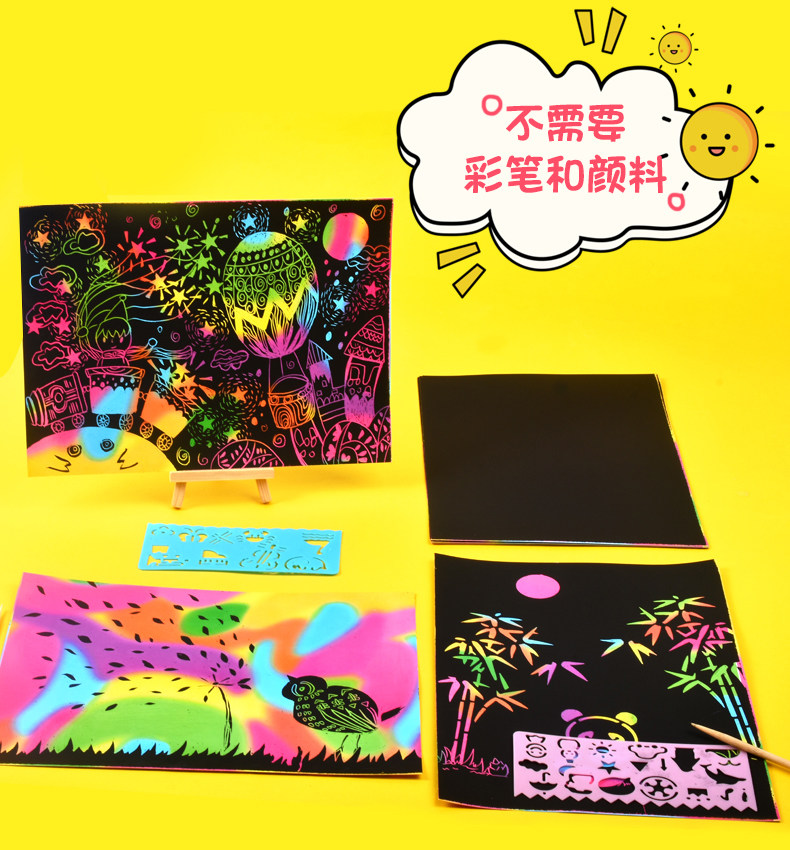 スクラッチオフ紙 A4 カラー学生幼稚園手作り diy 砂絵子供の落書き 8 オープン画用紙カラフルなスクラッチオフ絵画