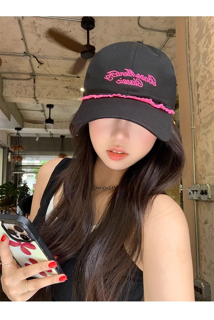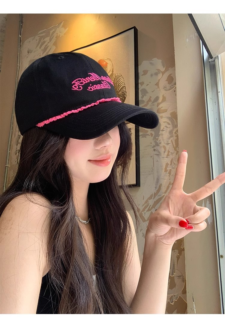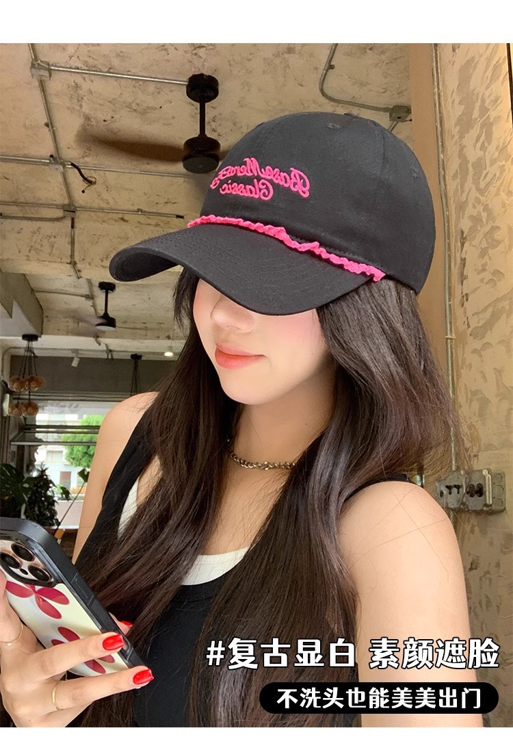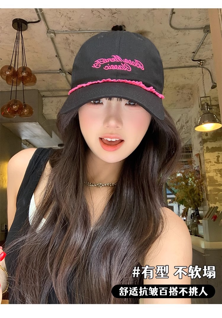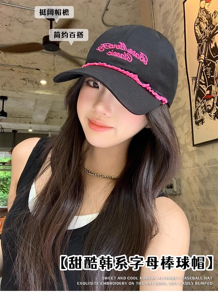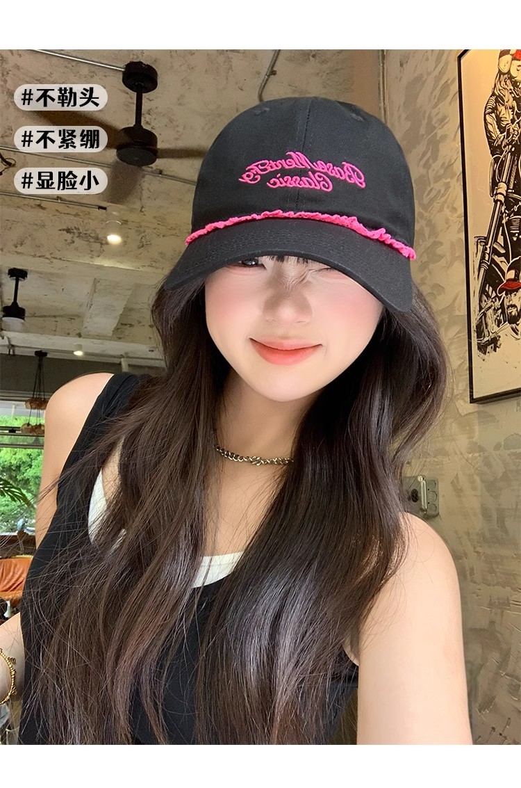 甘くてクールなホットガールスタイルの野球帽、女性用夏の新しい帽子、刺繍文字、大きな頭囲、顔が見える小さなサンバイザー、ひさし付きキャップ