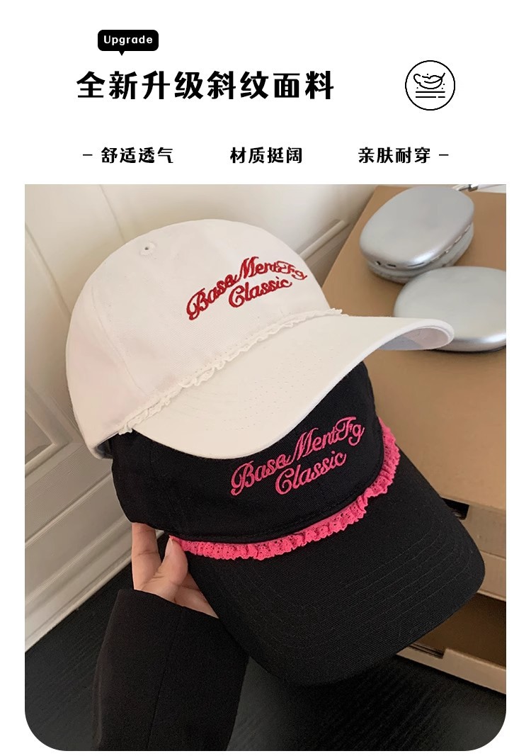 美式复古字母刺绣棒球帽女新款显白显脸小宽帽檐加大加深鸭舌帽子