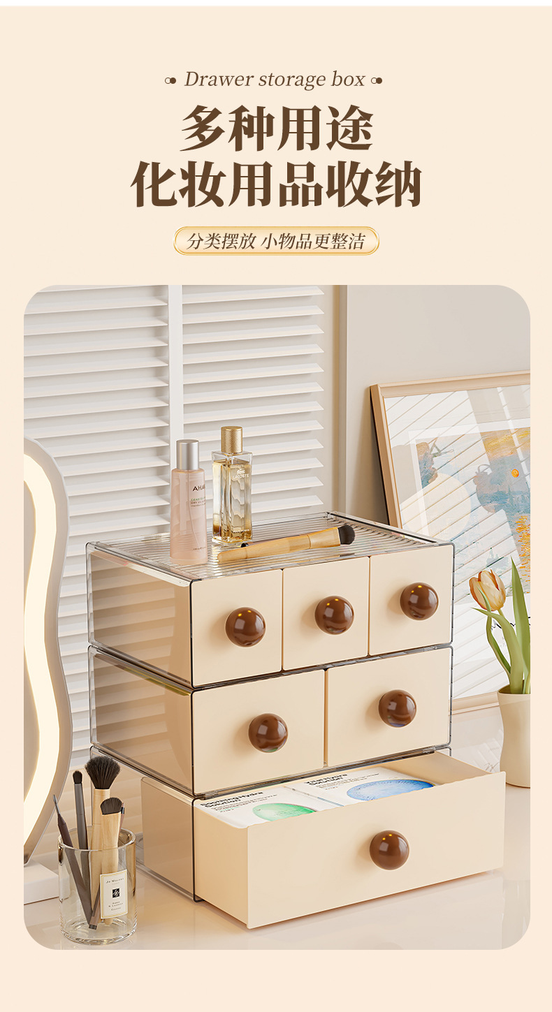 多格抽屉式桌面收纳盒卧室多功能高级感化妆品杂物收纳储物盒收纳