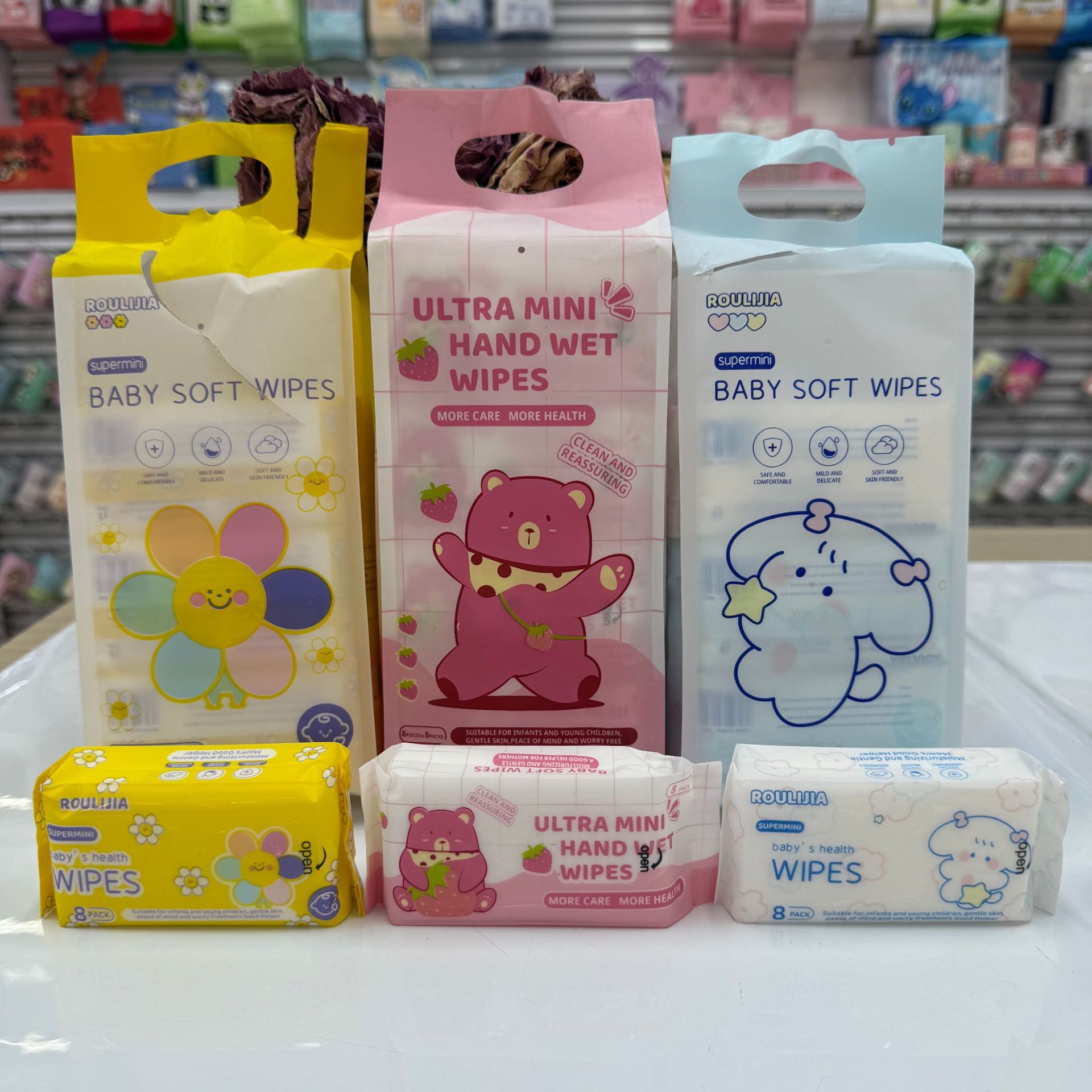 工場直販の完全英語版クロスボーダーミニ便利な取り外し可能な小さなバッグで手と口のクリーニングワイプを個別に持ち運べます