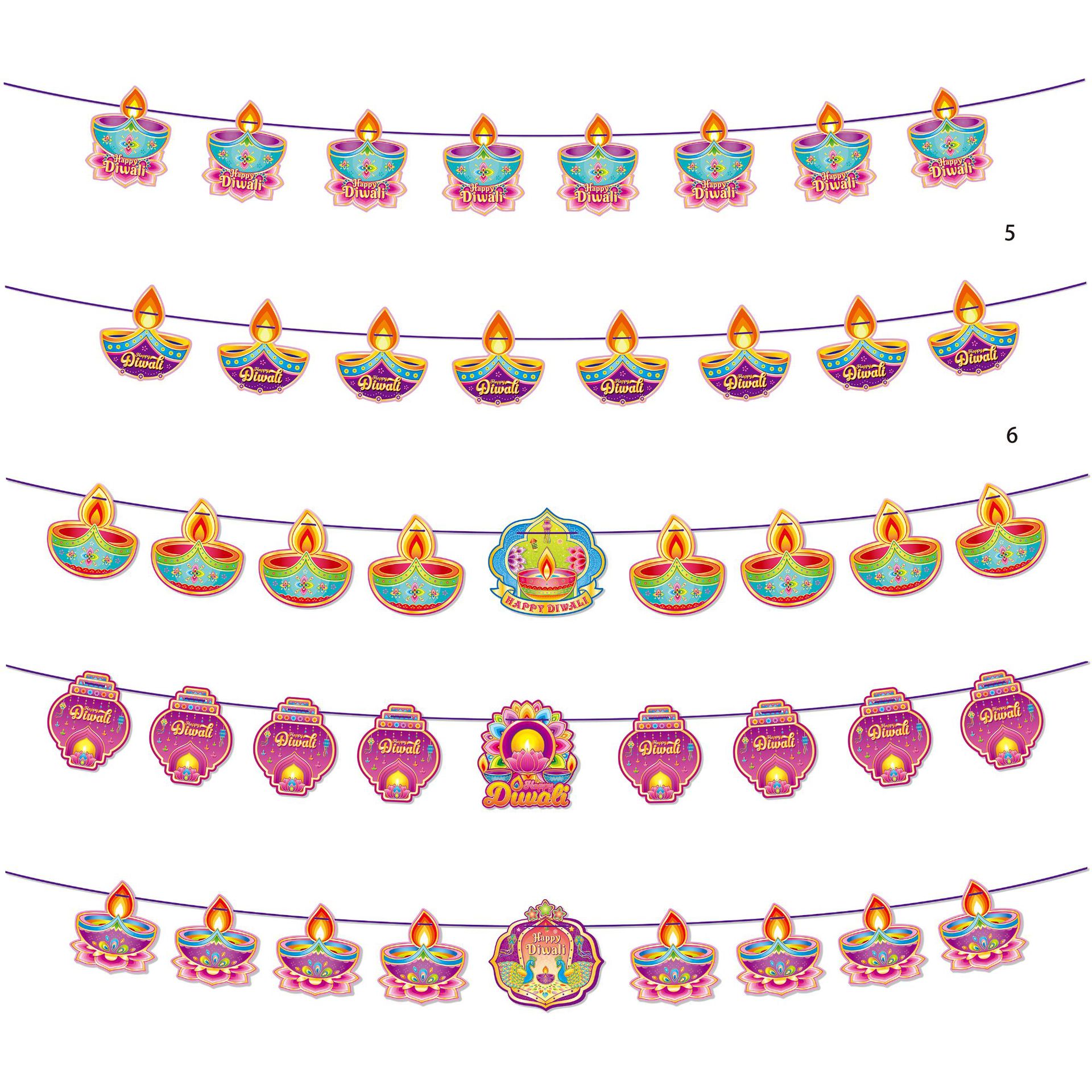 跨境新款排灯节拉旗印度万灯屠妖节拉旗排灯节主题派对装饰用品