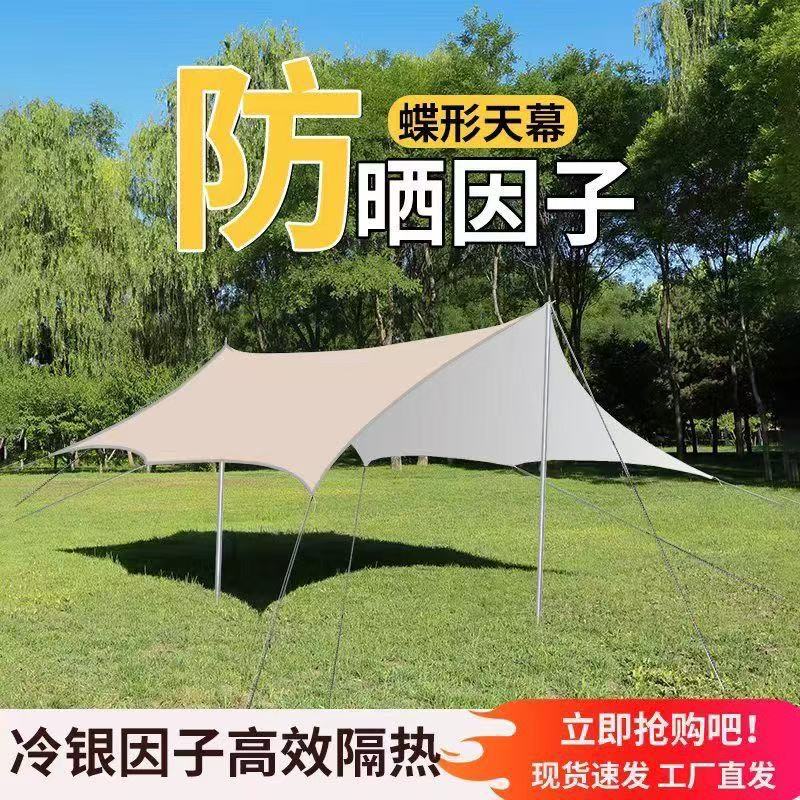 屋外用黒色蝶形テント キャンプ用日よけ雨よけ 厚手の日焼け止めオックスフォード布 防水防雨 ピクニック用