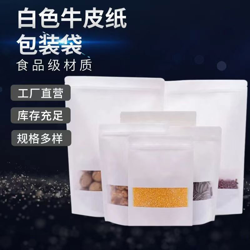 白いクラフト紙袋フロスト開窓食品包装袋クラフト紙自立自封袋スナックナッツ密封袋
