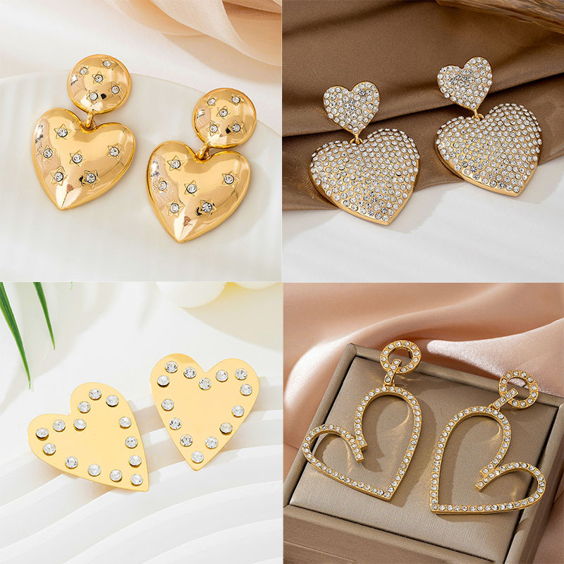 ファッショナブルで絶妙でコンパクトなダイヤモンドがちりばめられた中空のラブペンダントネックレス、多用途でシンプルな通勤スタイルのピーチハート型のイヤリングジュエリー