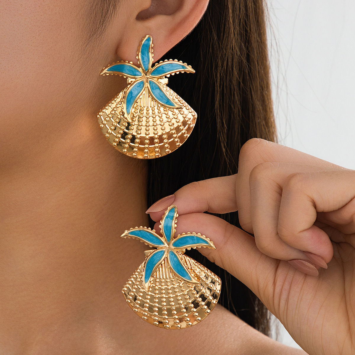 跨境夏日度假风彩色滴油海星贝壳耳环时尚沙滩海洋生物耳饰品批发