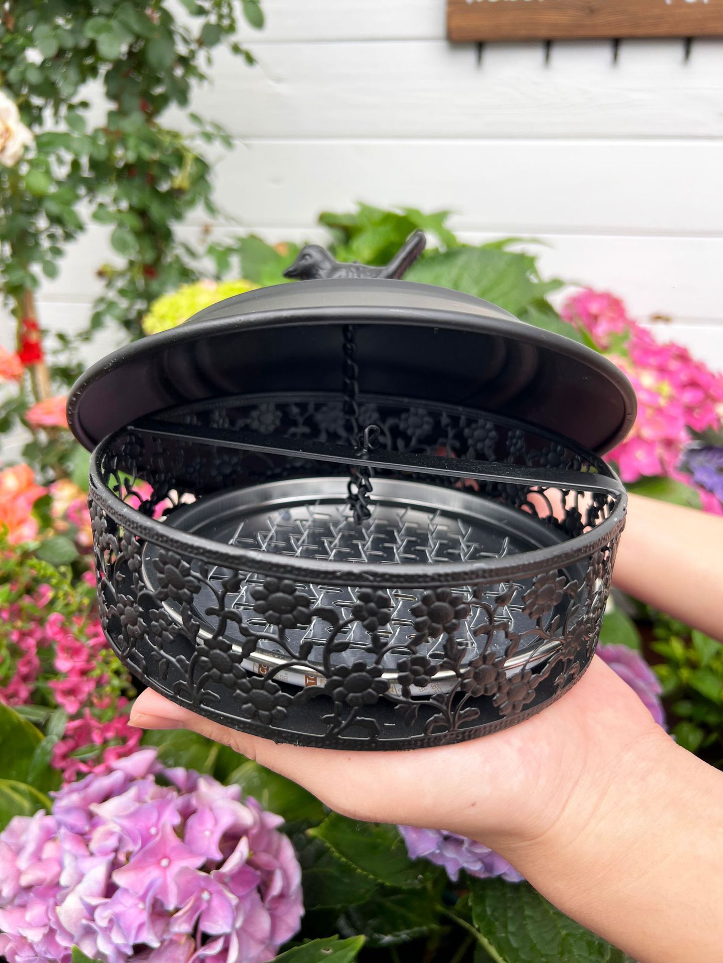 蚊取り線香トレイ 蚊取り線香ボックス サポート棚 蓋付き 安全な屋外キャンプ 庭 庭 吊り下げ香炉 ディスペンサー