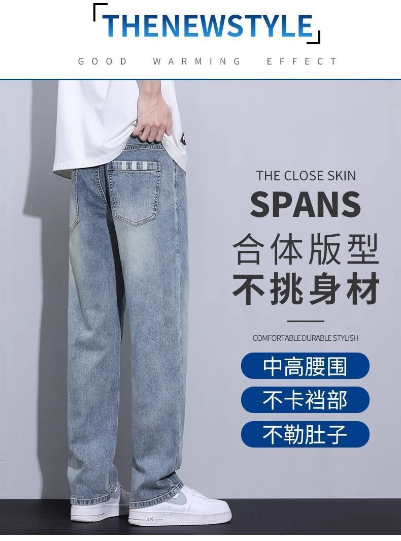 2025 夏薄いストレッチジーンズメンズストレートルーズカジュアルパンツ大きいサイズ夏の作業メンズパンツ