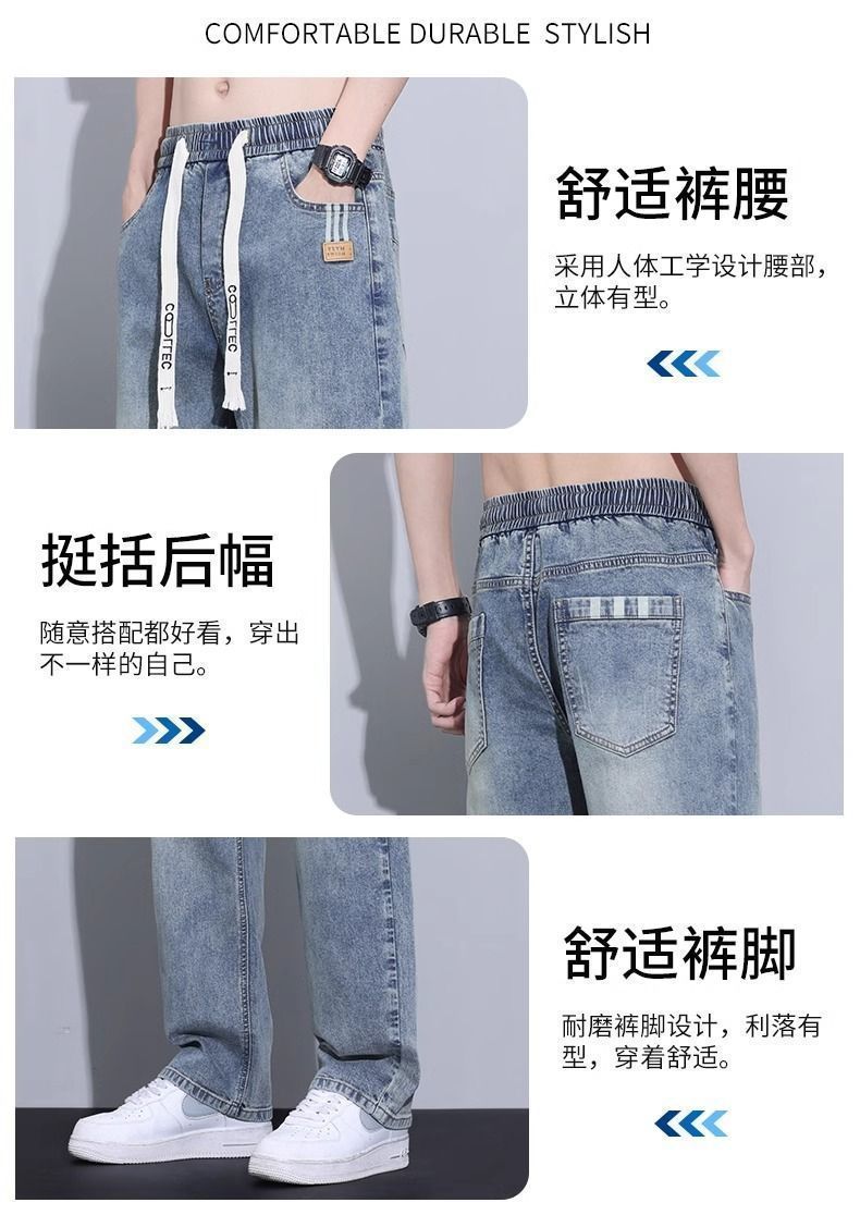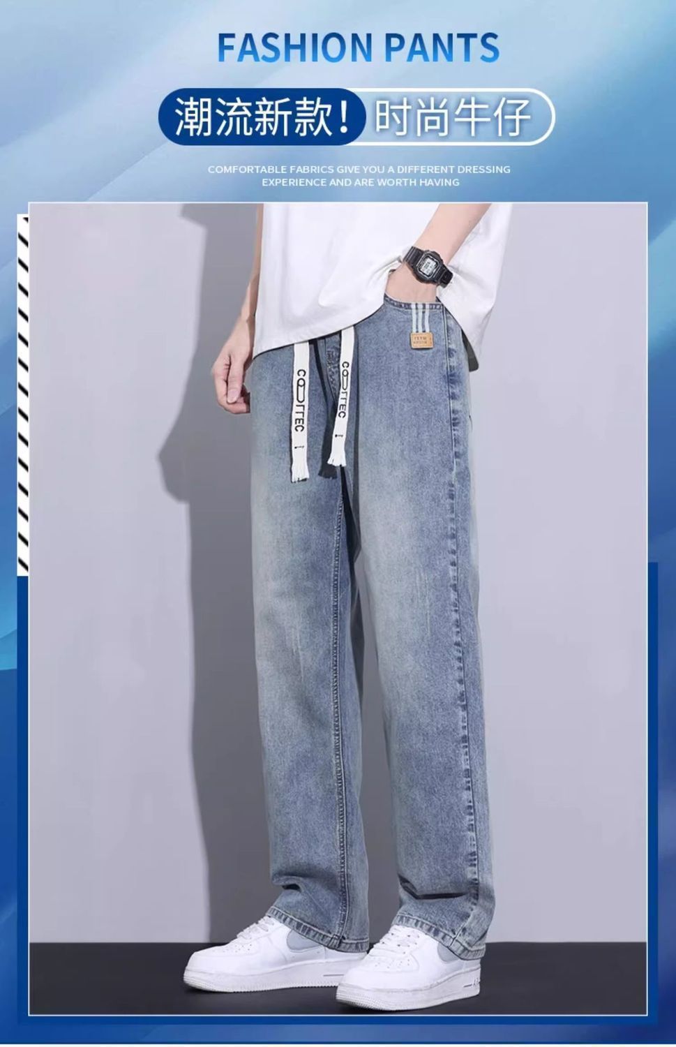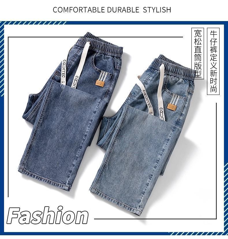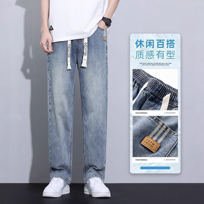 2025 新しいトレンディな春夏の弾性ウエスト巾着ジーンズメンズトレンディなブランドルーズで多用途な新しいカジュアルパンツ