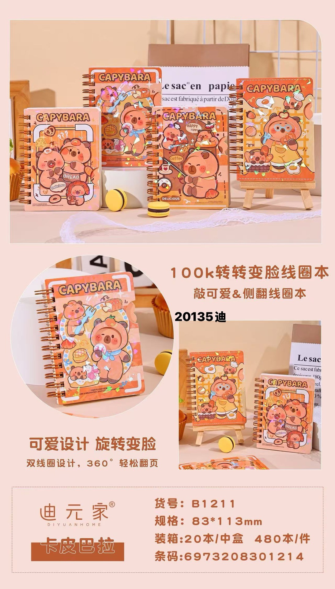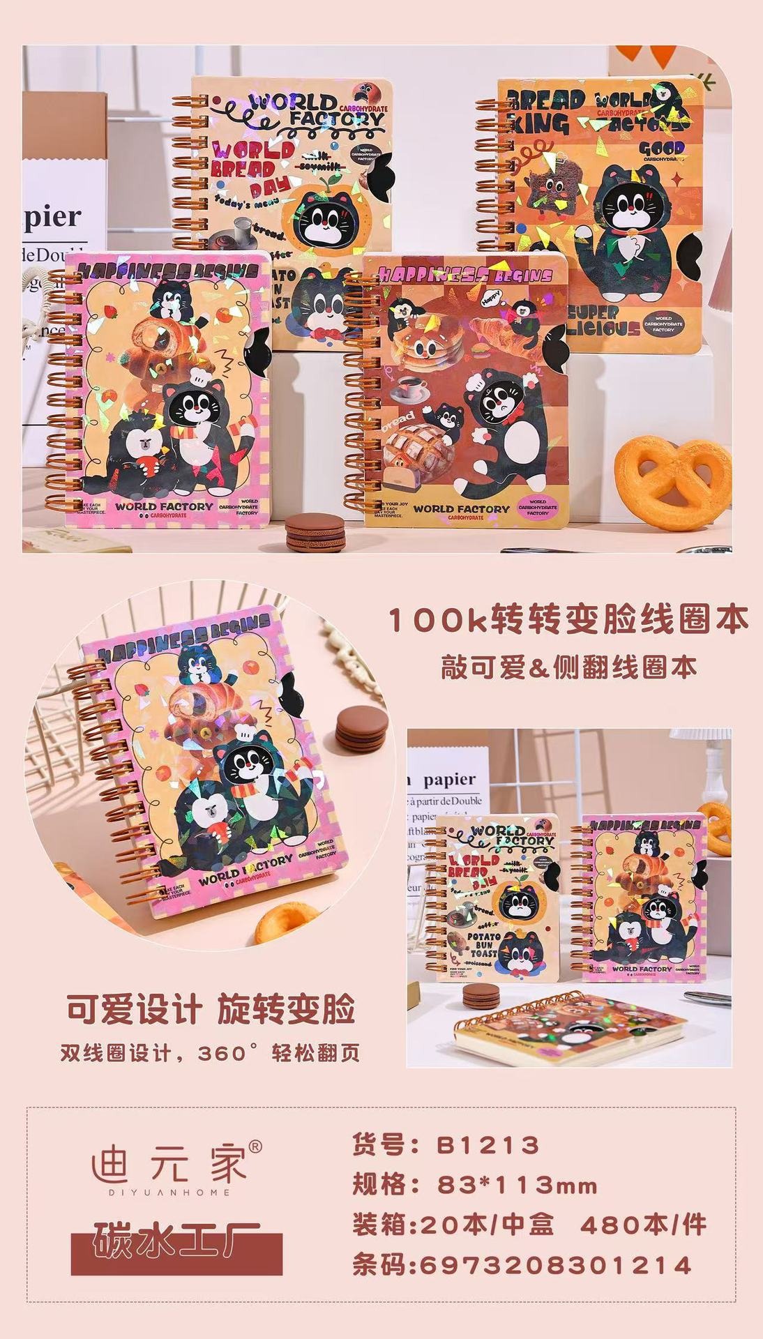 漫画かわいい新しい 100K 回転顔変更コイルノートブック学生クリエイティブ DIY 回転ノートブック
