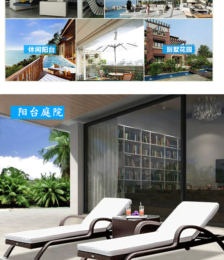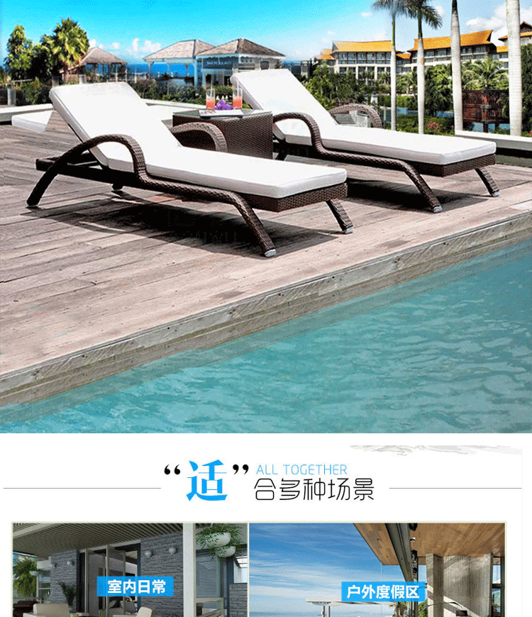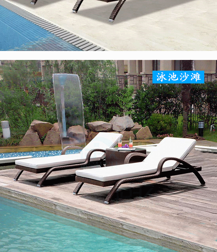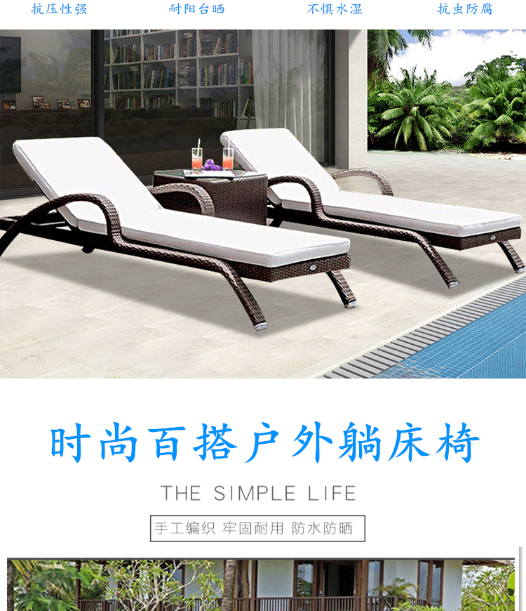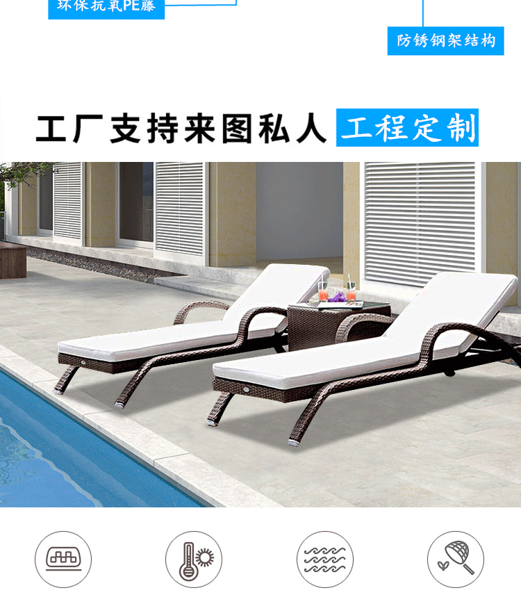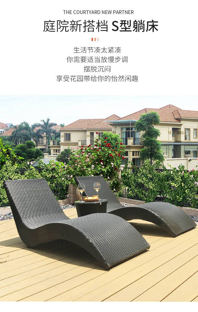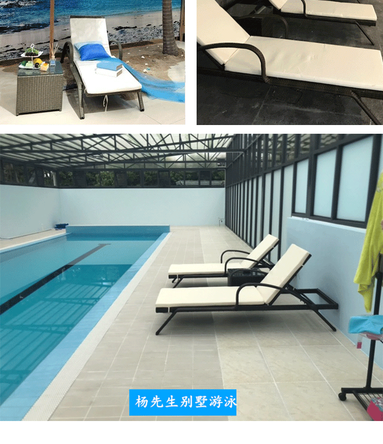 屋外ラウンジチェア、中庭スイミングプール、籐製ベッド、屋外ガーデン、屋外バルコニー、防水日焼け止めレジャービーチチェア
