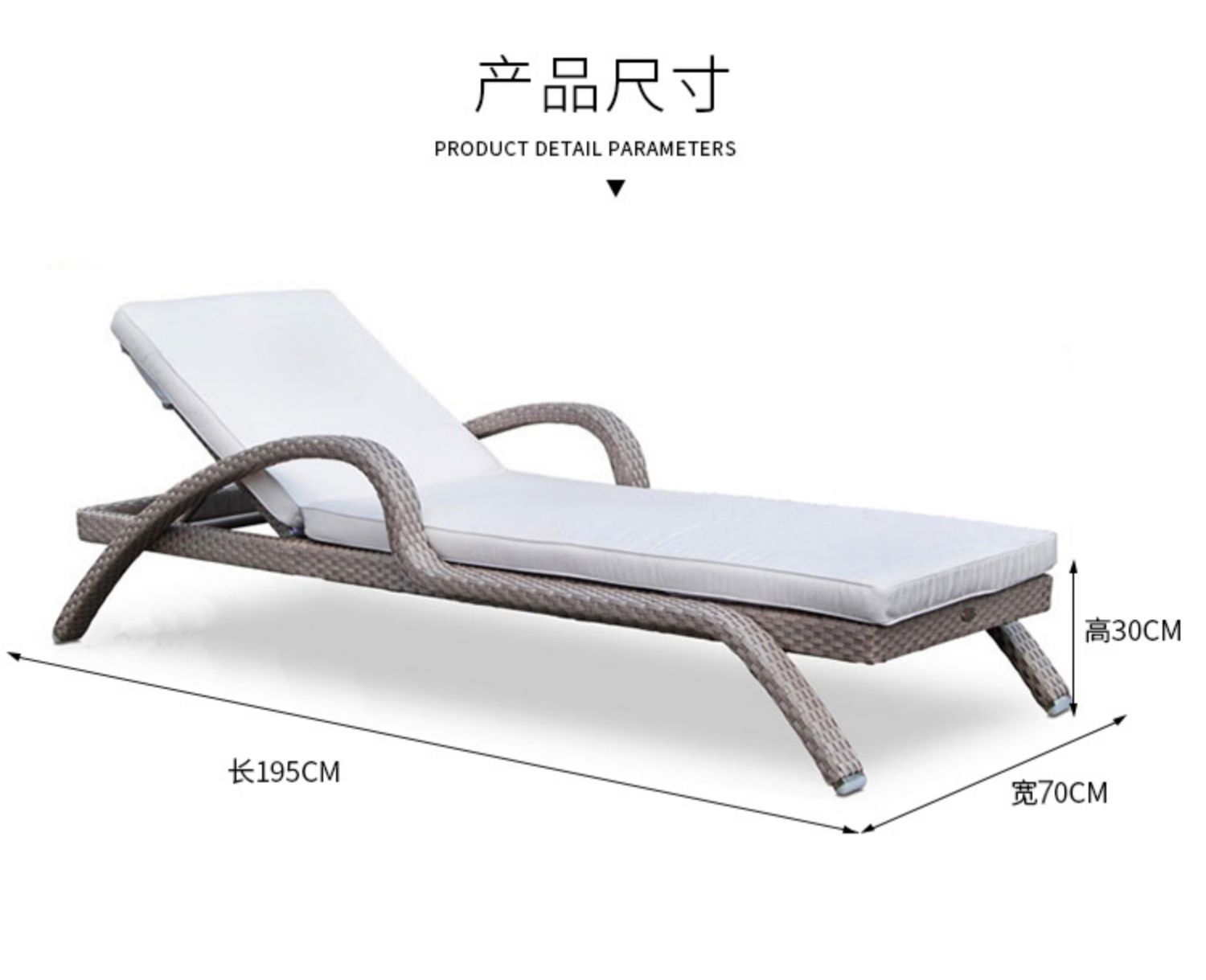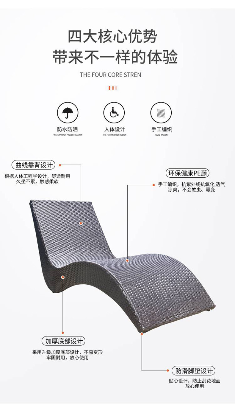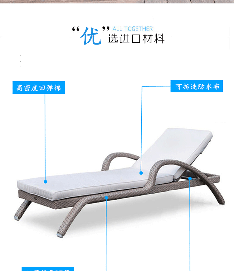 屋外リクライニングベッド、防水、日焼け止め、スイミングプール、ビーチ、ガーデン、サンルーム、バルコニー、屋外中庭、籐製リクライニングチェア