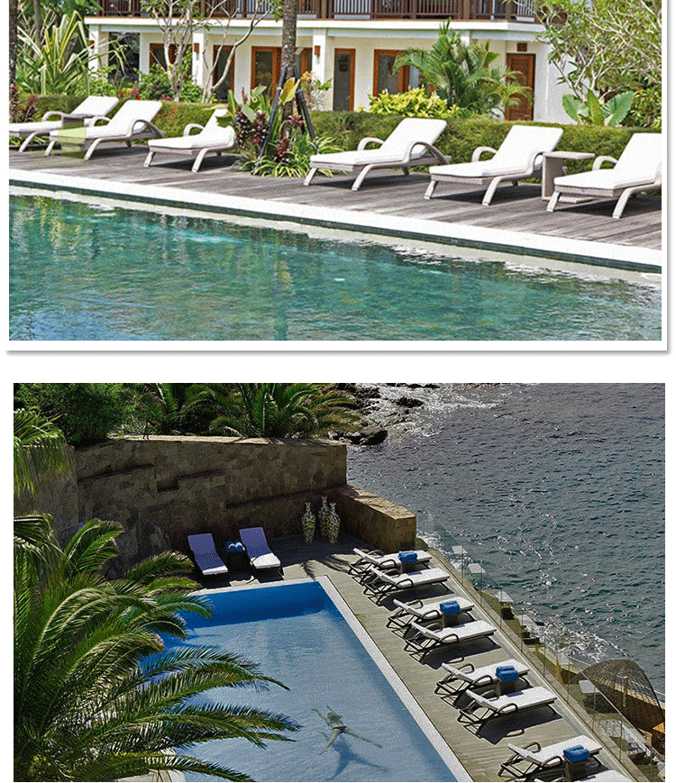 屋外リクライニングベッドホテルレジャーチェア屋外中庭無垢材リクライニングベッドヴィラリゾートスイミングプールリクライニングベッドビーチチェア