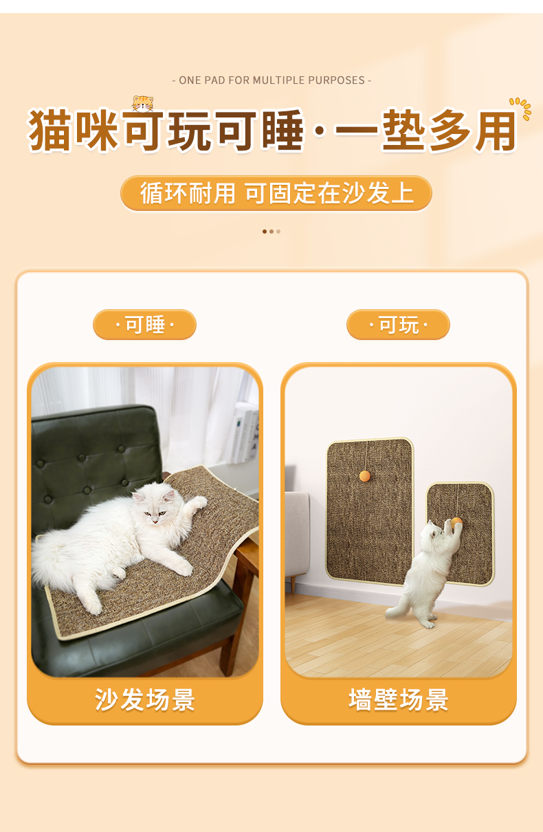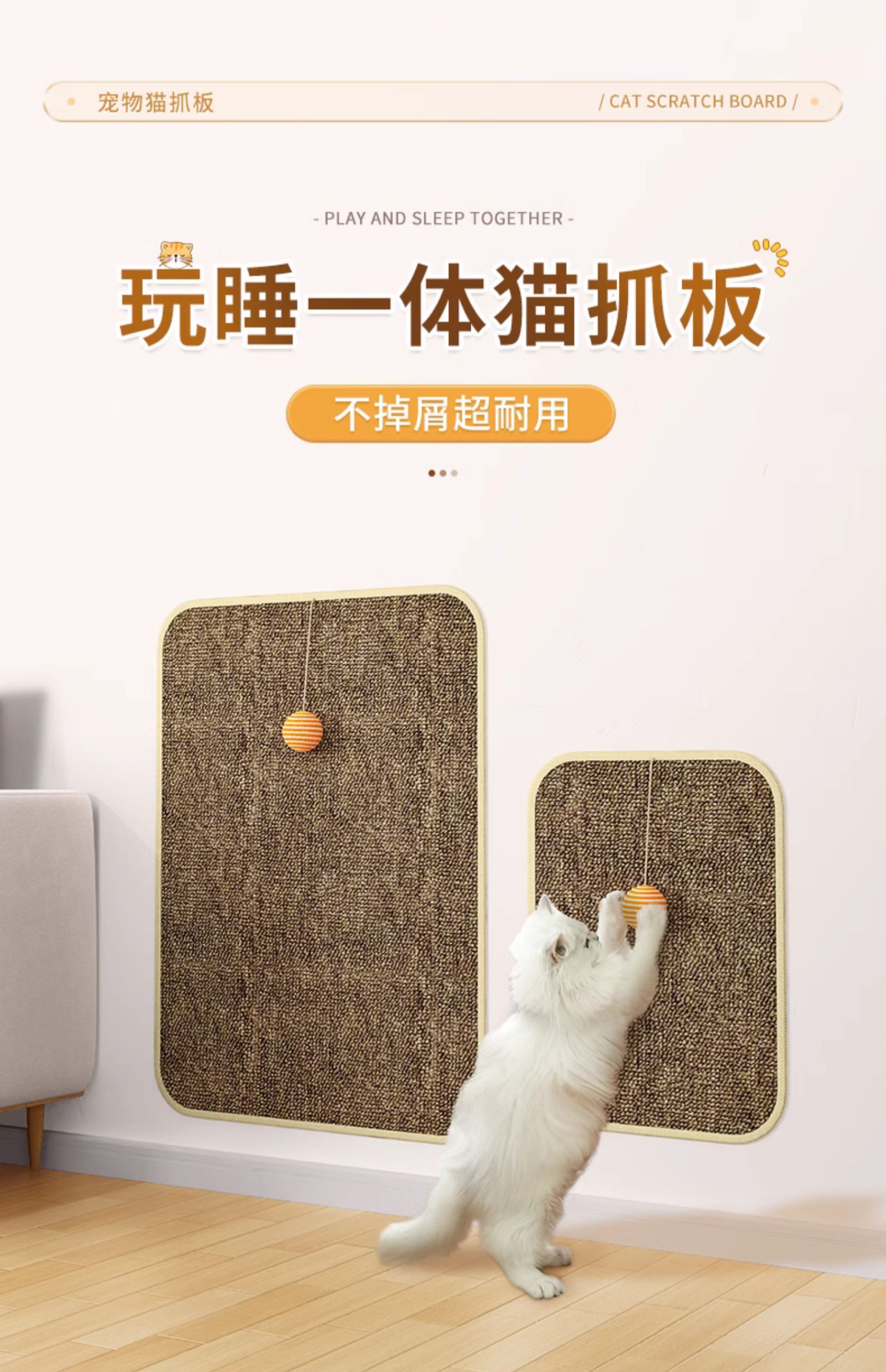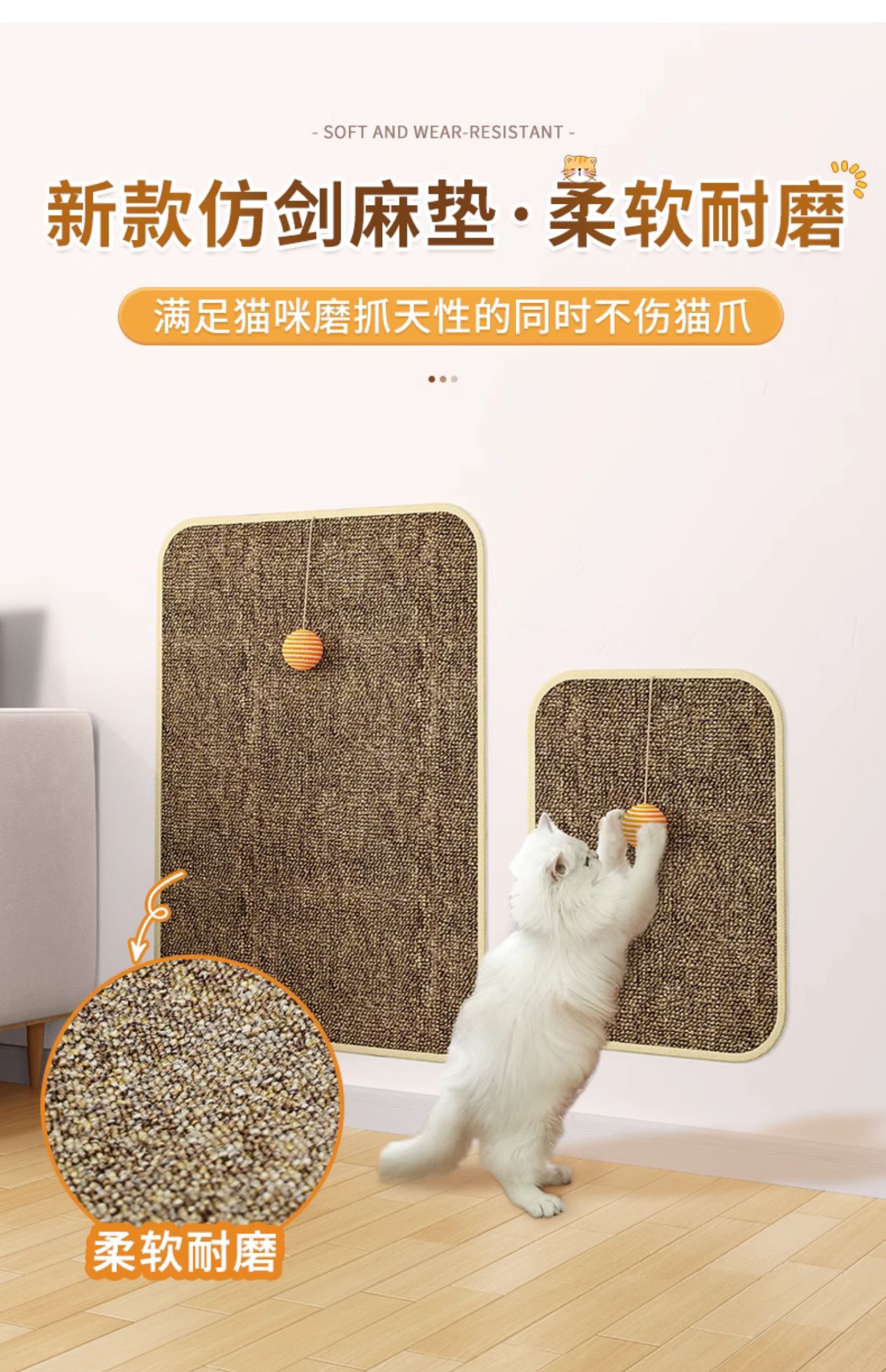 壁に貼り付ける傷つきにくいマット、保護耐摩耗性サイザル麻猫スクラッチボード、猫の爪を傷つけない模造ソファ猫おもちゃ、猫のスクラッチボード