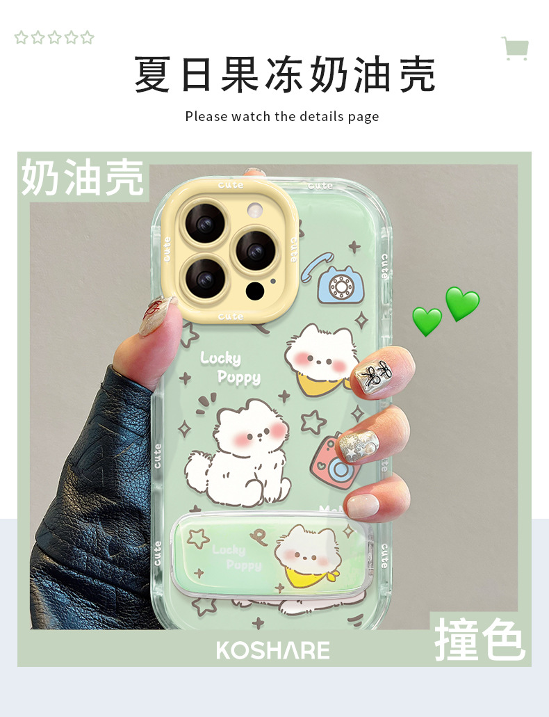 ゼリークリームシェル~透明グリーン~かわいい犬+スタンド,ゼリークリームシェル~透明パウダー~かわいい猫+スタンド,ゼリークリームシェル-透明グリーン-かわいい犬,ゼリークリームシェル~透明パウダー~かわいい猫
