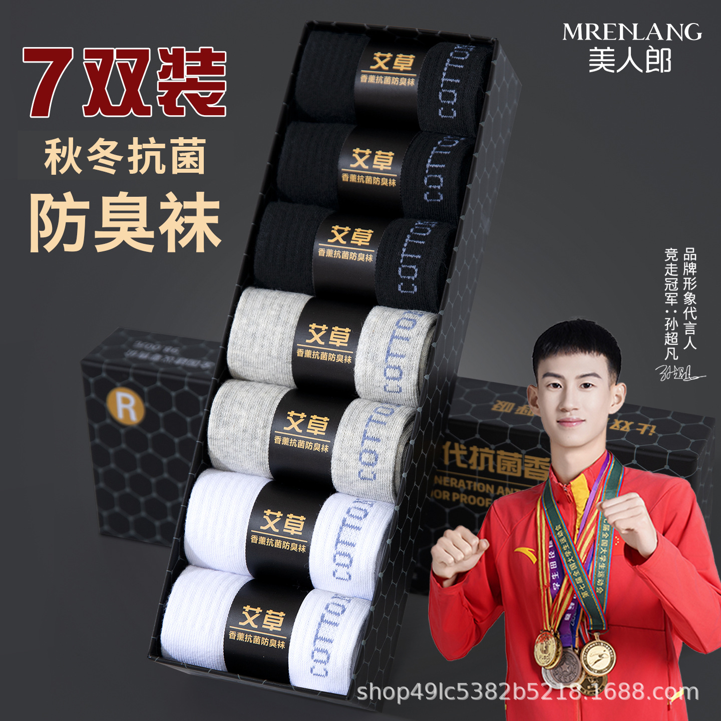 礼盒装秋冬季新品袜子男士香薰中筒袜7a抗菌防臭透气吸汗运动棉袜