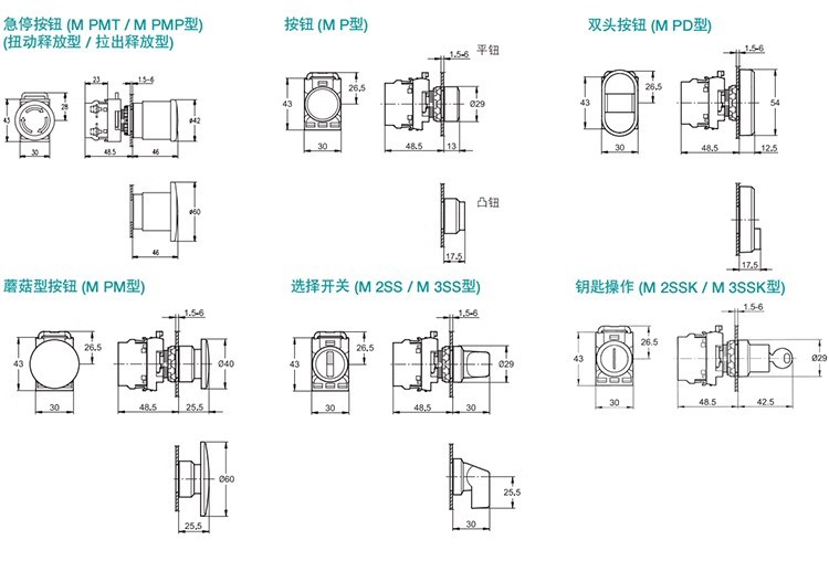 ABB フラットヘッド複合ボタン MP1-41G-11 MP1-41R-11 MP1-41C-01 MP1-41L-01