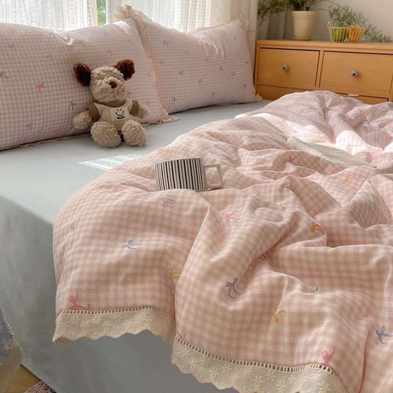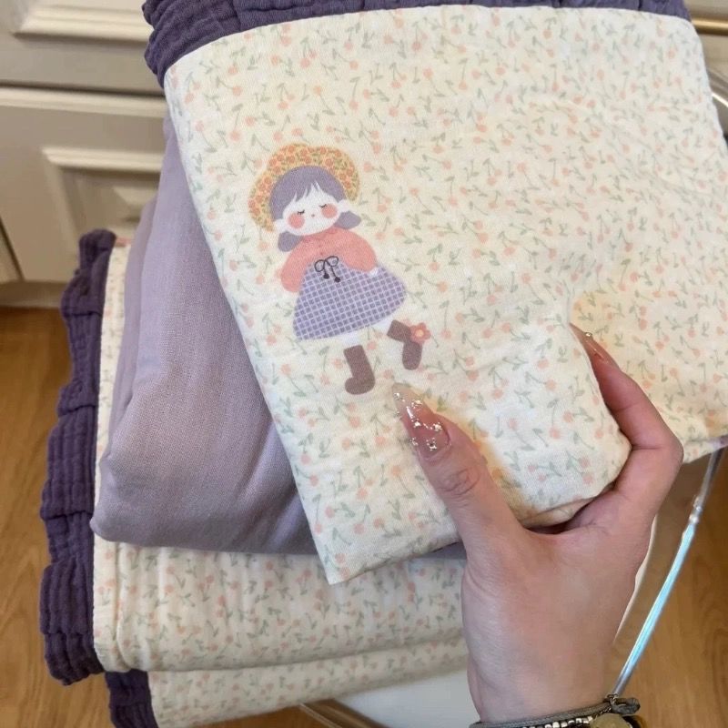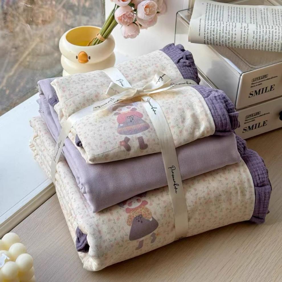 HIINIIA クラスWrinkle Yarn Wood Ear Washed Cotton ベッドシーツ4点セット 寮用ベッドシーツと掛け布団カバー3点セット
