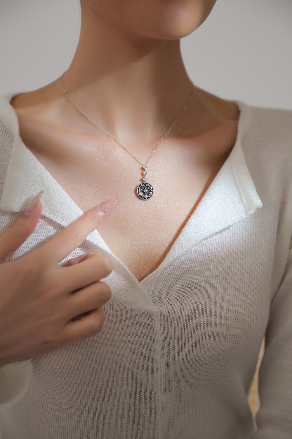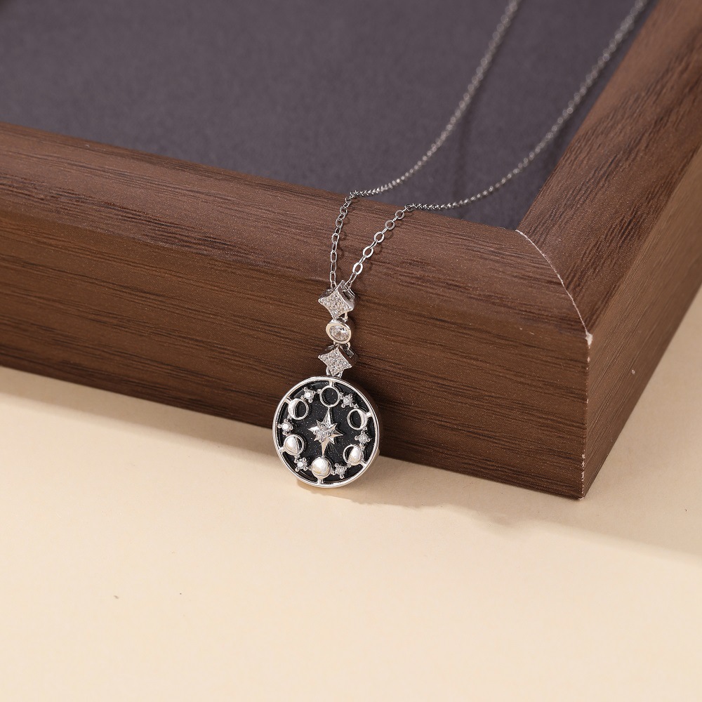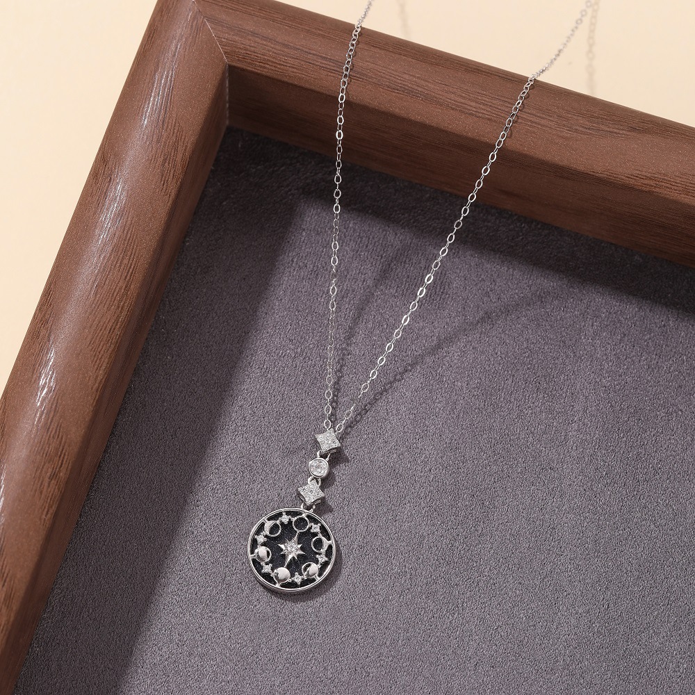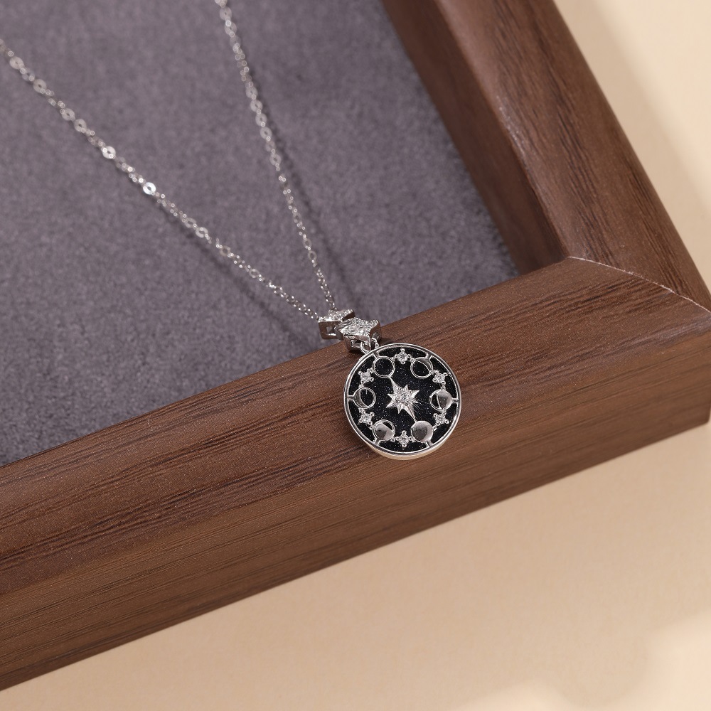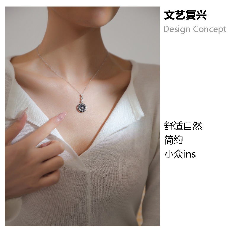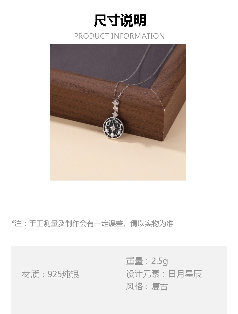 レトロ S925 スターリングシルバー AliExpress クロスボーダーブルーサンドストーンプレートスタームーンネックレスハイエンドパーソナライズされた鎖骨女性チェーン