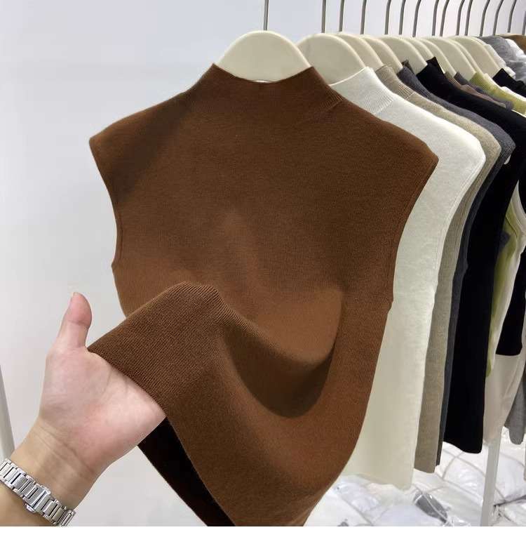 2025 夏ハーフタートルネックノースリーブセーターレディーススリムフィットインナースリムフィットボトリングシャツベスト気質多用途トップ