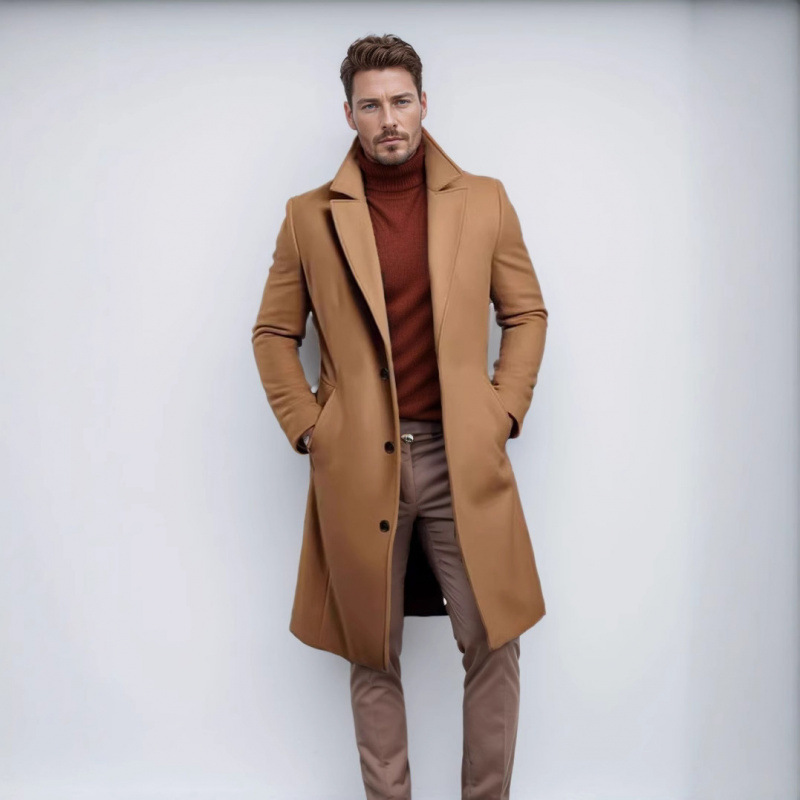 2025 新しい外国貿易ウールコートメンズミッドレングス無地秋冬ウールコート暖かい若者コートジャケット