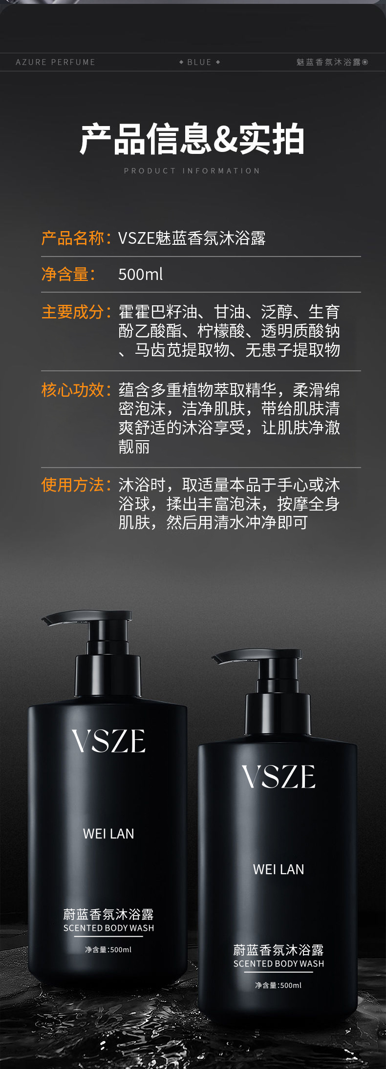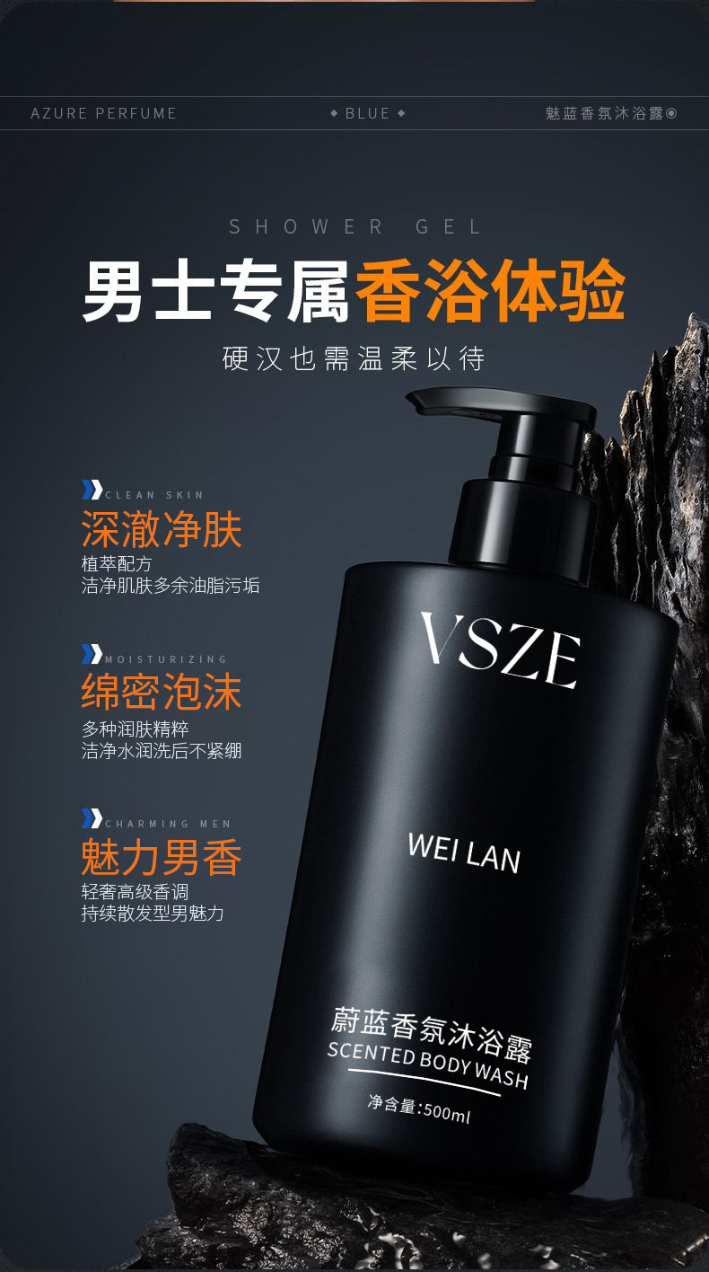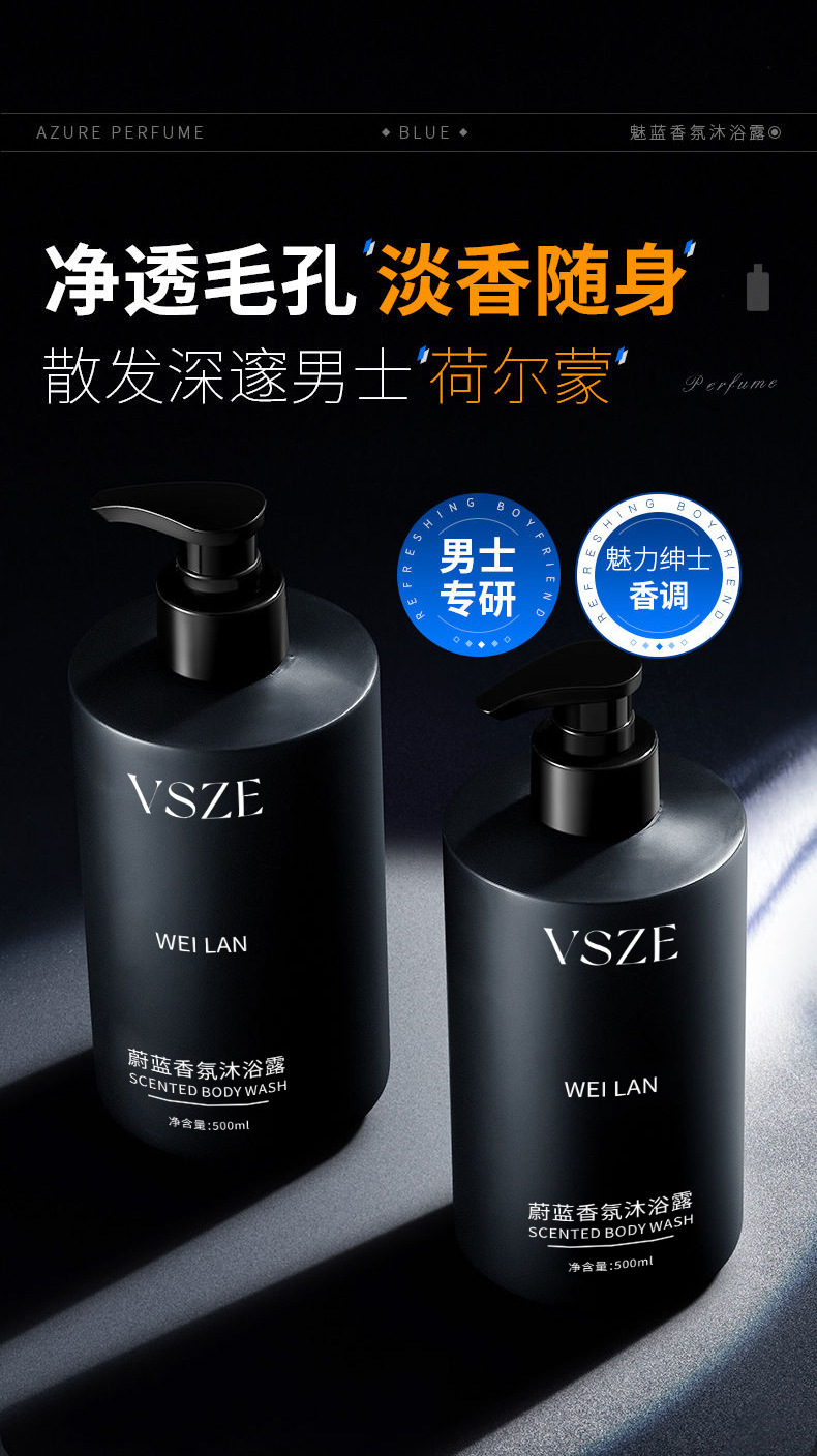 VSZE ブルーフレグランスシャワージェル保湿、さわやか、水分補給ボディスキンケアクレンジングシャワージェル卸売ホットスタイル
