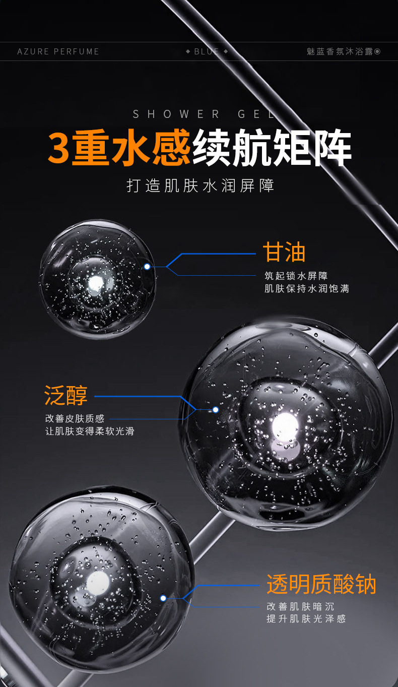 VSZE ブルーフレグランスシャワージェル保湿、さわやか、水分補給ボディスキンケアクレンジングシャワージェルホットスポット