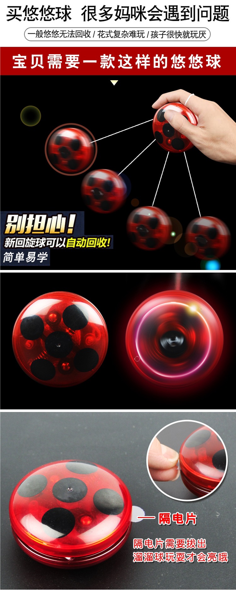 儿童悠悠球玩具奇迹少女自动回收发光溜溜球炫光闪光金属悠悠球