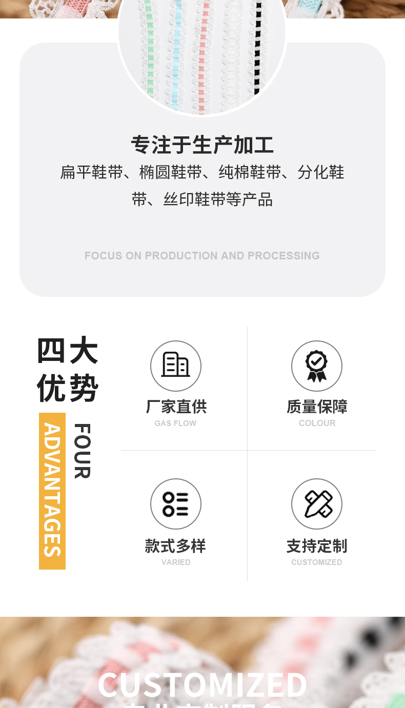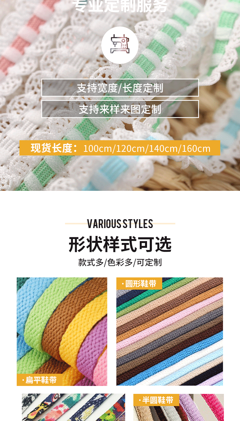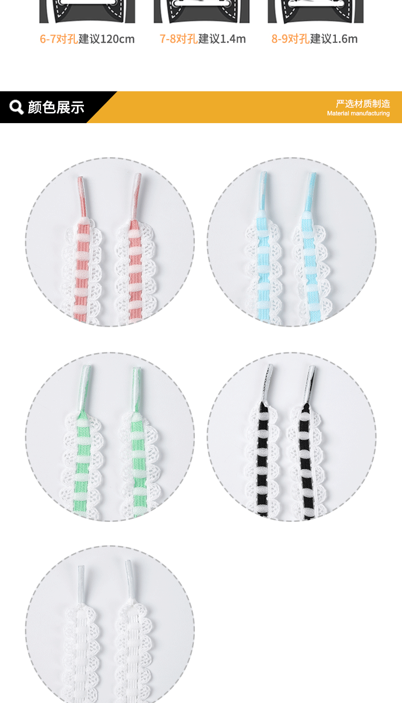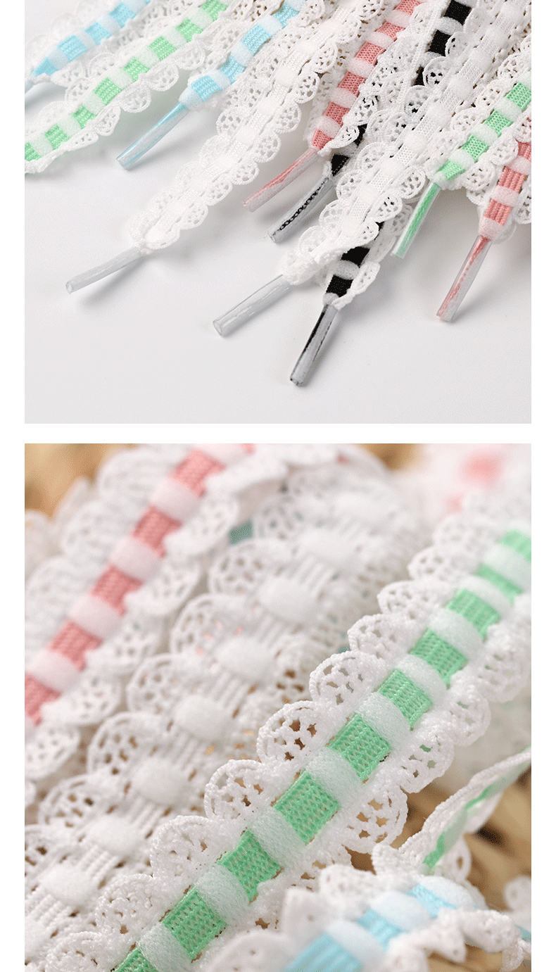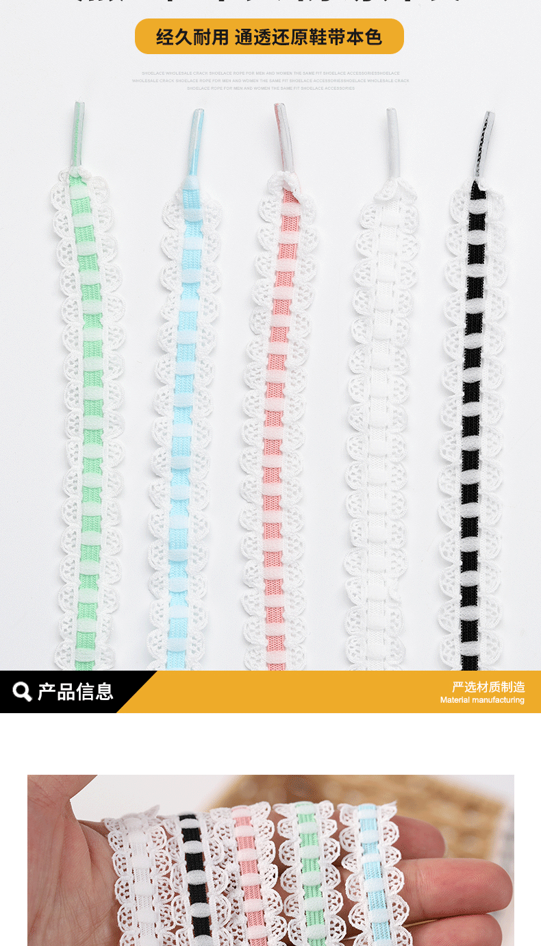 1.1cm宽光丝花边丝绸鞋带绳一双高级感黑白彩色配芭蕾风德训鞋帶
