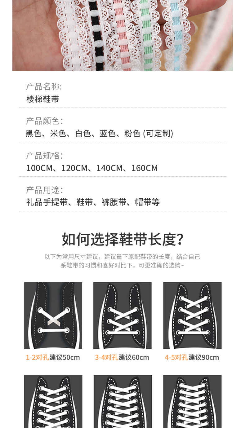 白い階段の靴ひも,黒い階段の靴ひも,ピンクの階段靴ひも,ミントグリーンの階段靴紐,青い階段の靴ひも