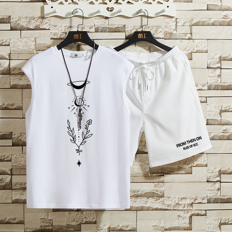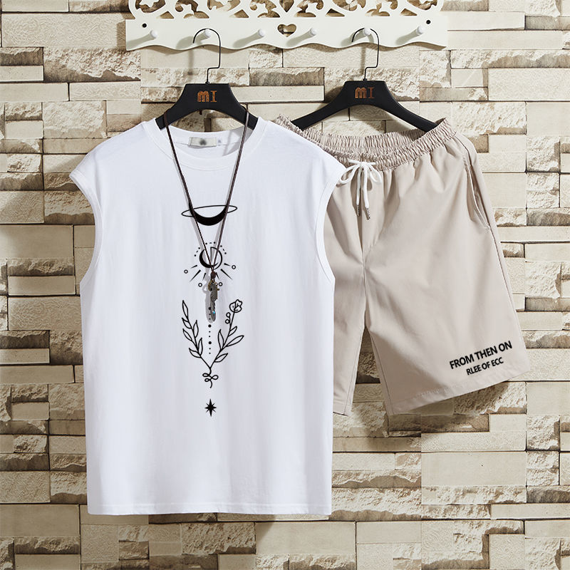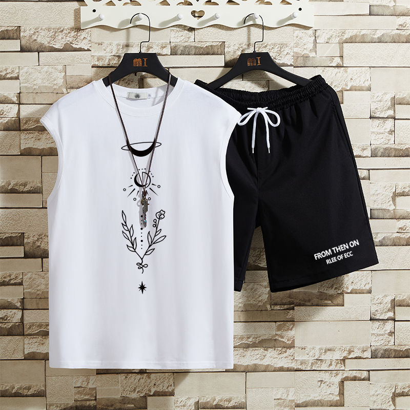 カジュアルトレンドベストスーツメンズ夏ルーズベストTシャツショーツマッチング学生ハンサムトレンディブランド2点セット