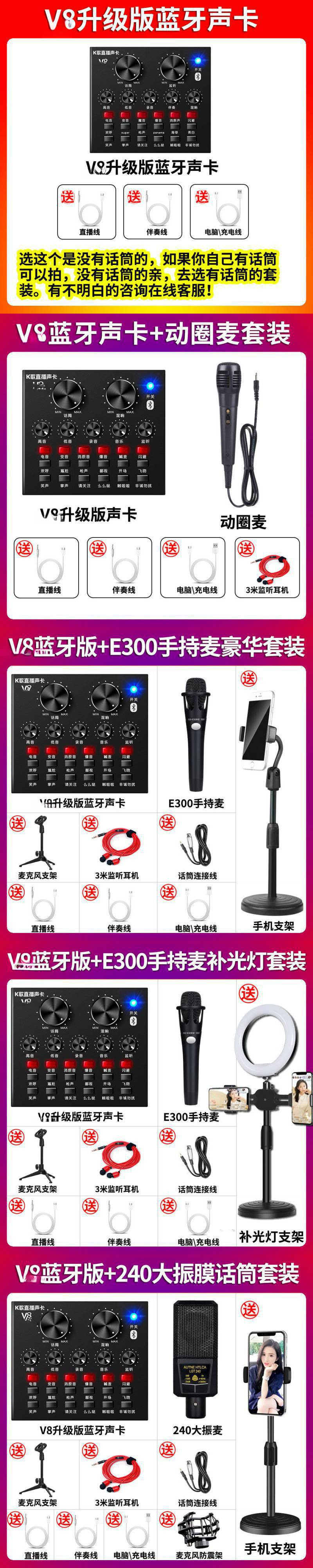 V8 Bluetooth サウンド カード スタンダード エディション,V8 Bluetooth サウンドカード + ダイナミック マイク セット,V8 Bluetooth サウンド ハンドヘルド マイク デラックス セット,V8 Bluetooth サウンド カード デュアル カメラ フィル ライト セット,V8 Bluetooth サウンドカード + 240 スクエアマイクセット