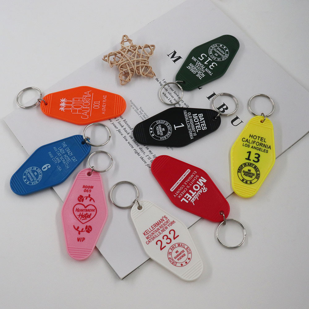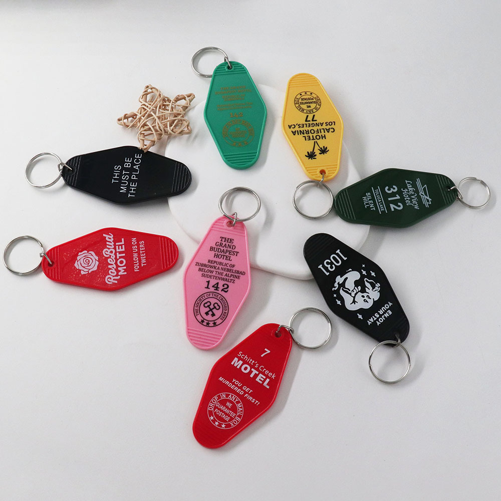 UV印刷既存デザインカラフルなホテルブランドキーホルダー外国貿易ホテルホテル菱形キーホルダーキーホルダー