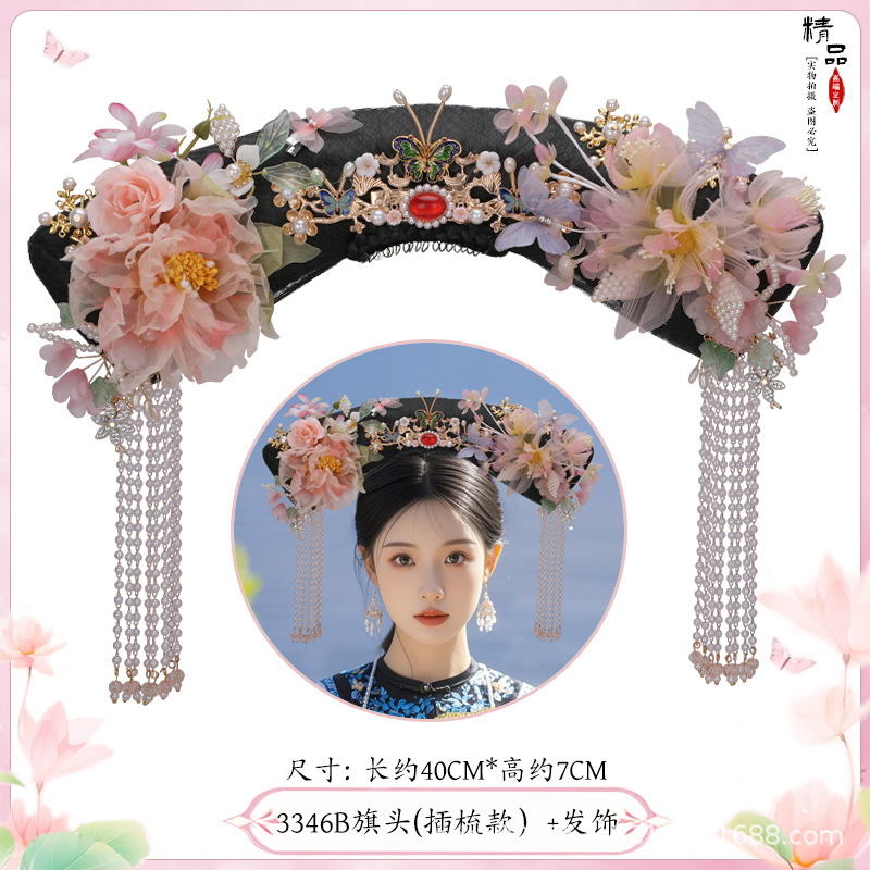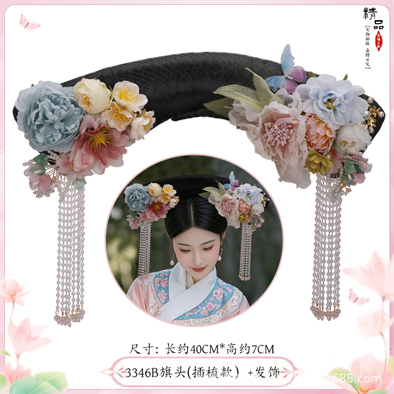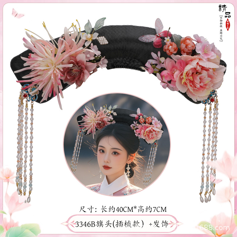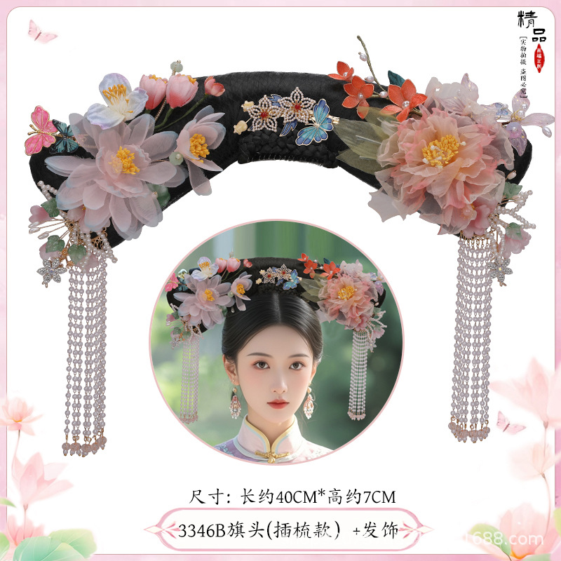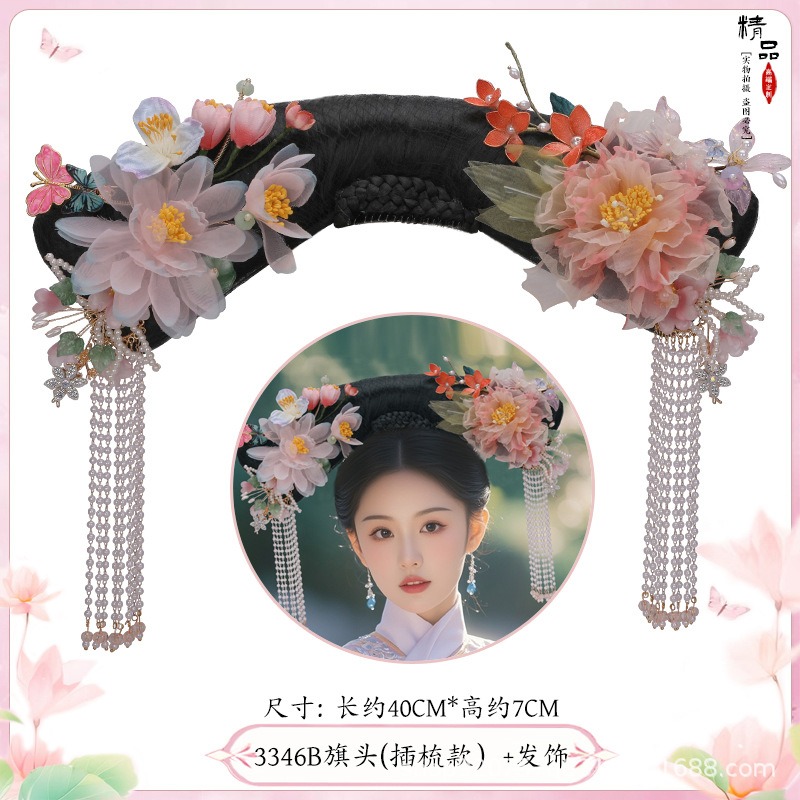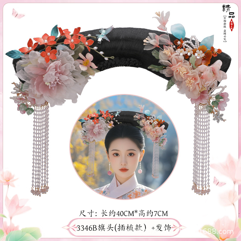 古代中国の漢服旗頭かつら清朝満州皇后スタイルおだんごヘアアクセサリー初心者コームスタイル 3346B