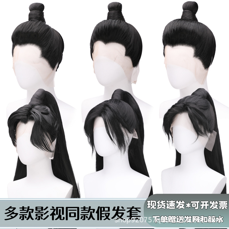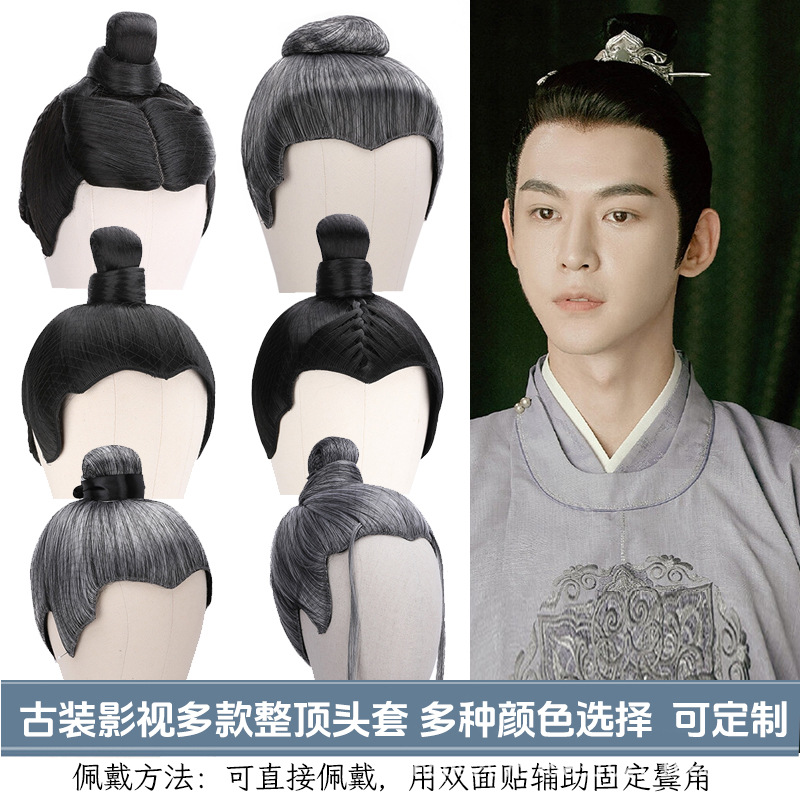 古代風の男性スタイルのフルヘッドギアウィッグ映画とテレビの妖精と同じスタイルのハイポニーテールヘアセット古代衣装ヘアクラウン 1217