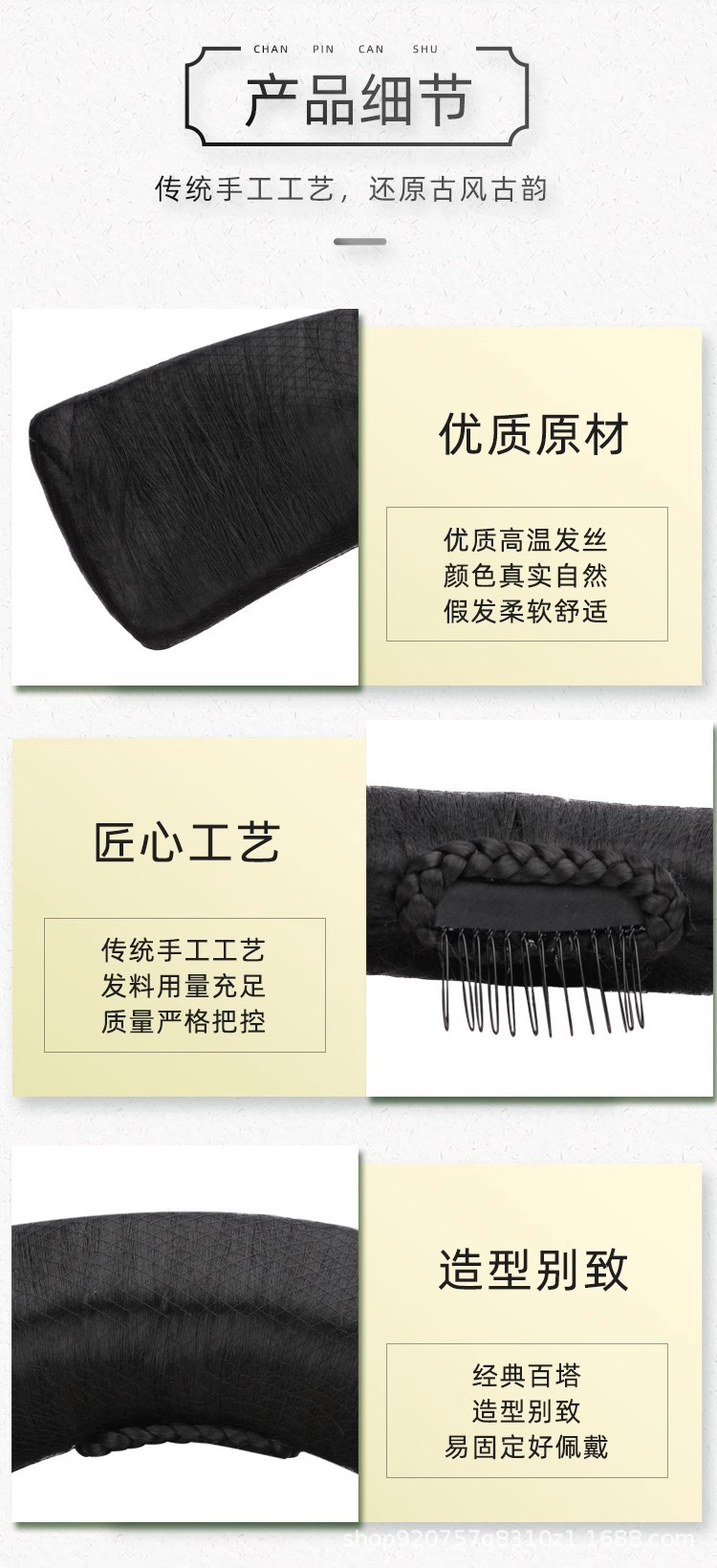 古代風子供用オールインワンおだんごヘア漢服女の子多用途半月ヘアバンドウィッグおだんごヘア明宋シンプルヘアアクセサリー