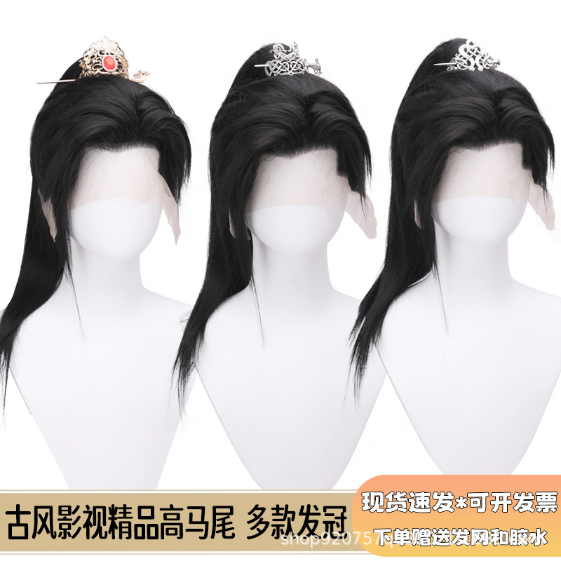 古代風メンズハーフタイハイポニーテールウィッグ映画とテレビの妖精と同じスタイルのオールインワン即時スタイリングウィッグヘアクラウン1214A