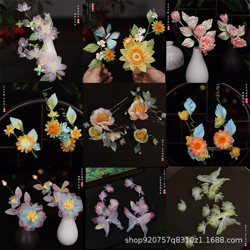 漢服シルクフラワーヘアアクセサリー、女性用ホットフラワーヘアピン、古代スタイルのサイドクリップ、後頭部プレスフラワークリップ、気質蝶、多用途のヘッドドレス