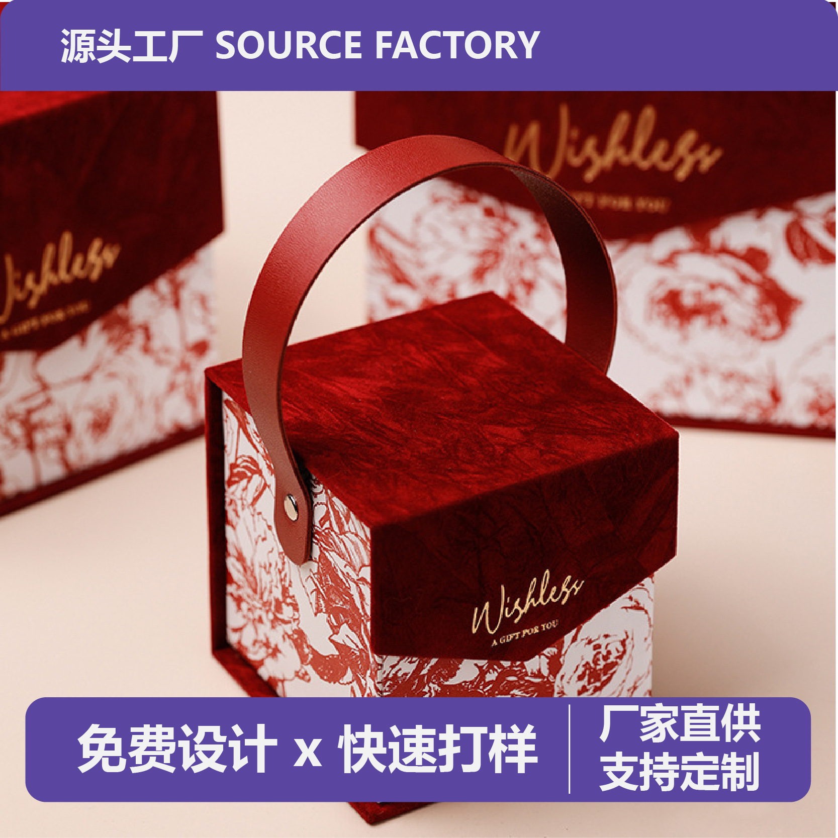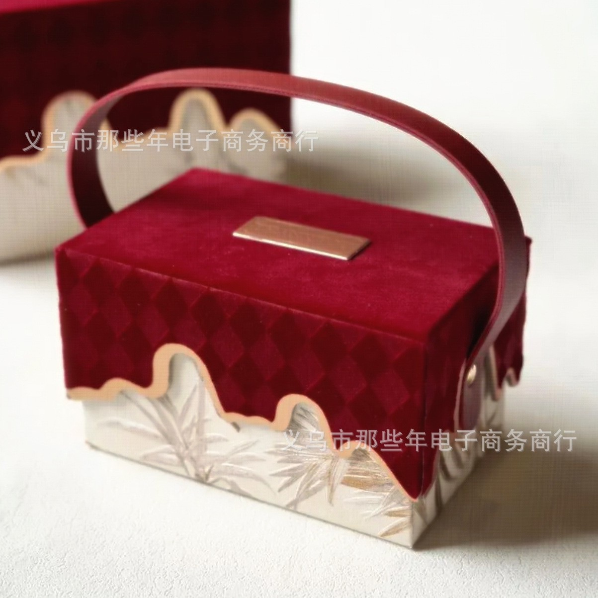 2025新款轻奢婚礼礼品伴手礼品盒 高档丝绒手提化妆品包装手提盒